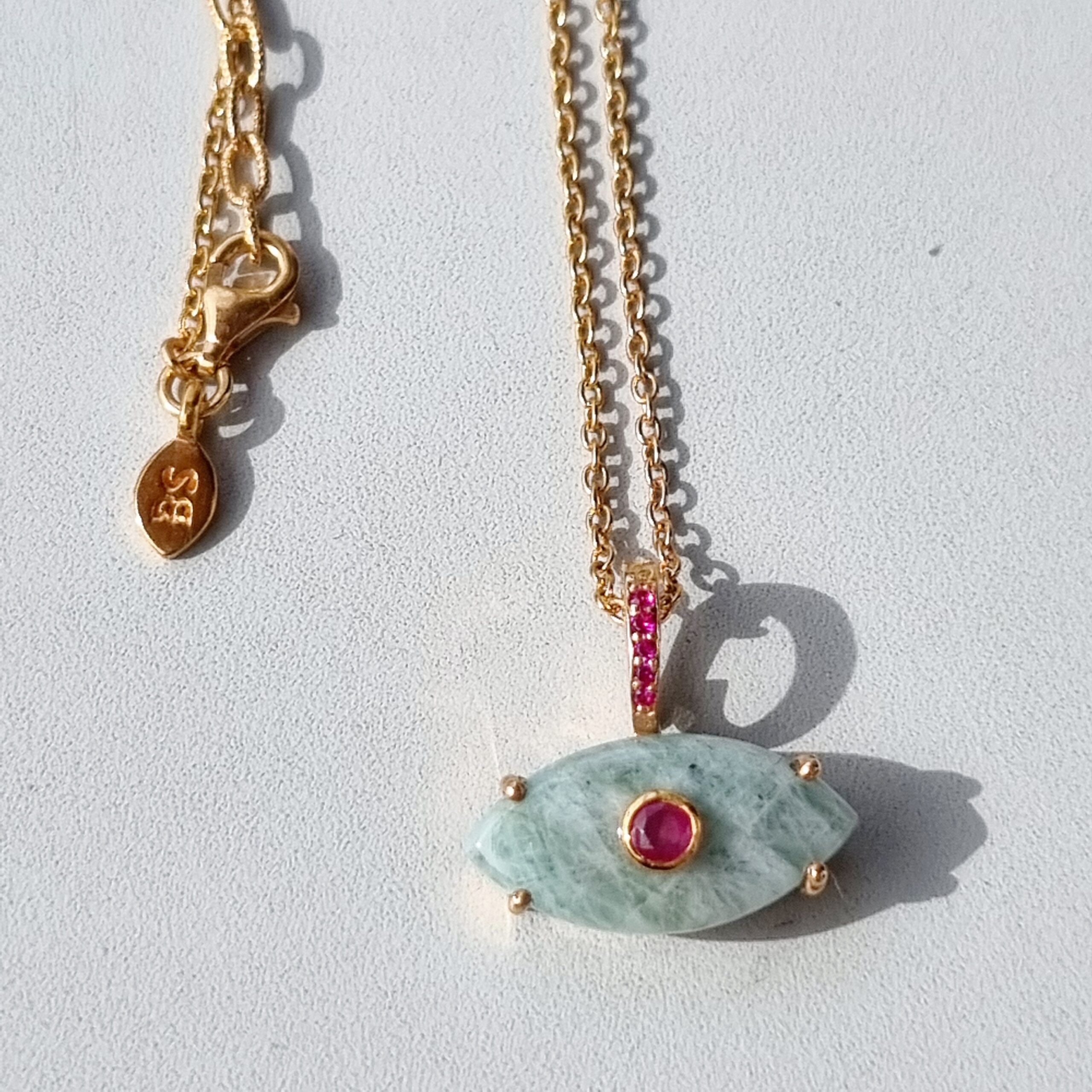 Ainara est un bijou de protection mais aussi un talisman porte bonheur intemporel et tendance, il est proposé ici avec une pierre principale en Emeraude et son iris goutte avec un zircon fushia. Sa bélière détachable vous permet de changer de chaine. Chaque pierre naturelle est unique et donc différente.