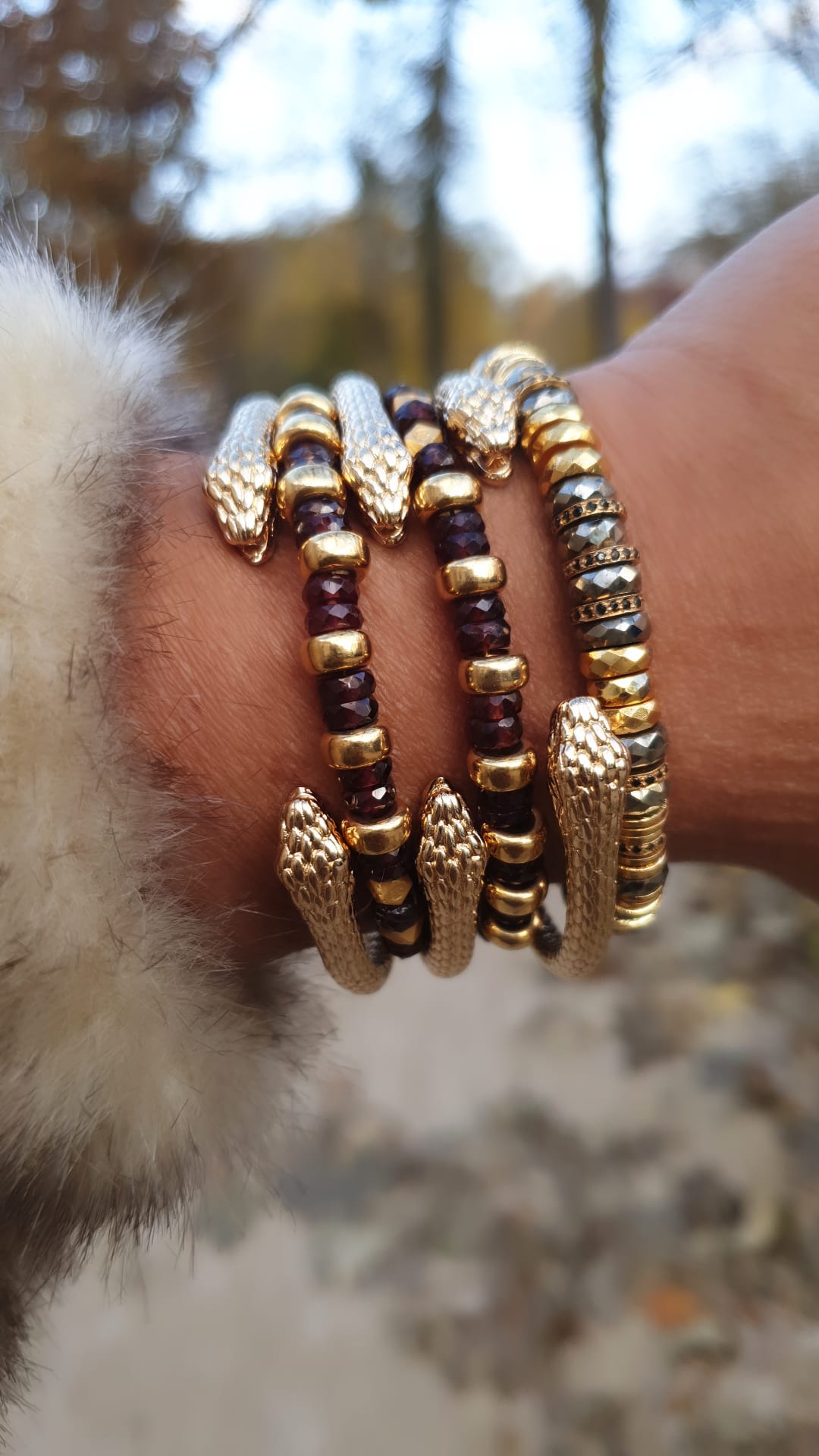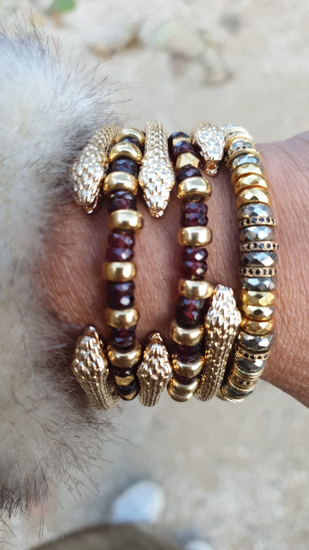 AJAR est un jonc ouvert plaqué or 3 microns avec de chaque coté une tête de serpent.