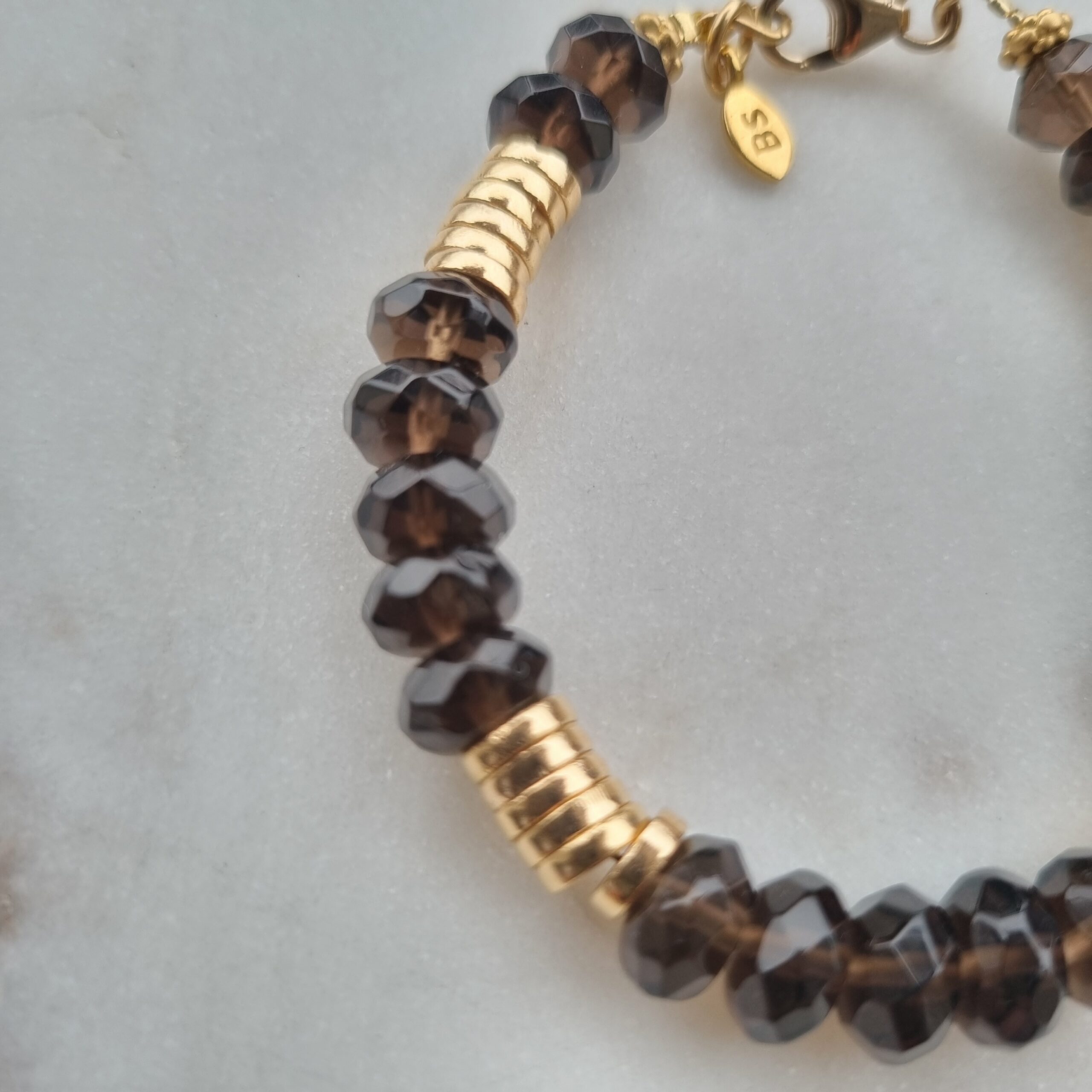 ALLEGORIA est un bracelet e pierre de quartz fumé et laiton plaqué or.