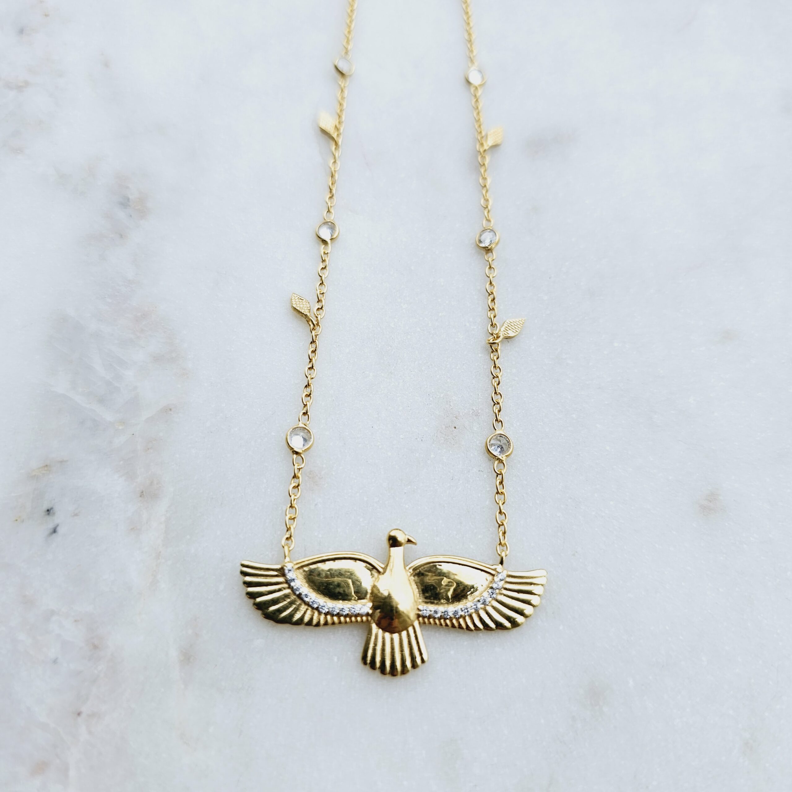 ARIZONA EAGLE est tout en argent massif 925 plaqué or, avec sur la chaine de petites pampilles et zircons.