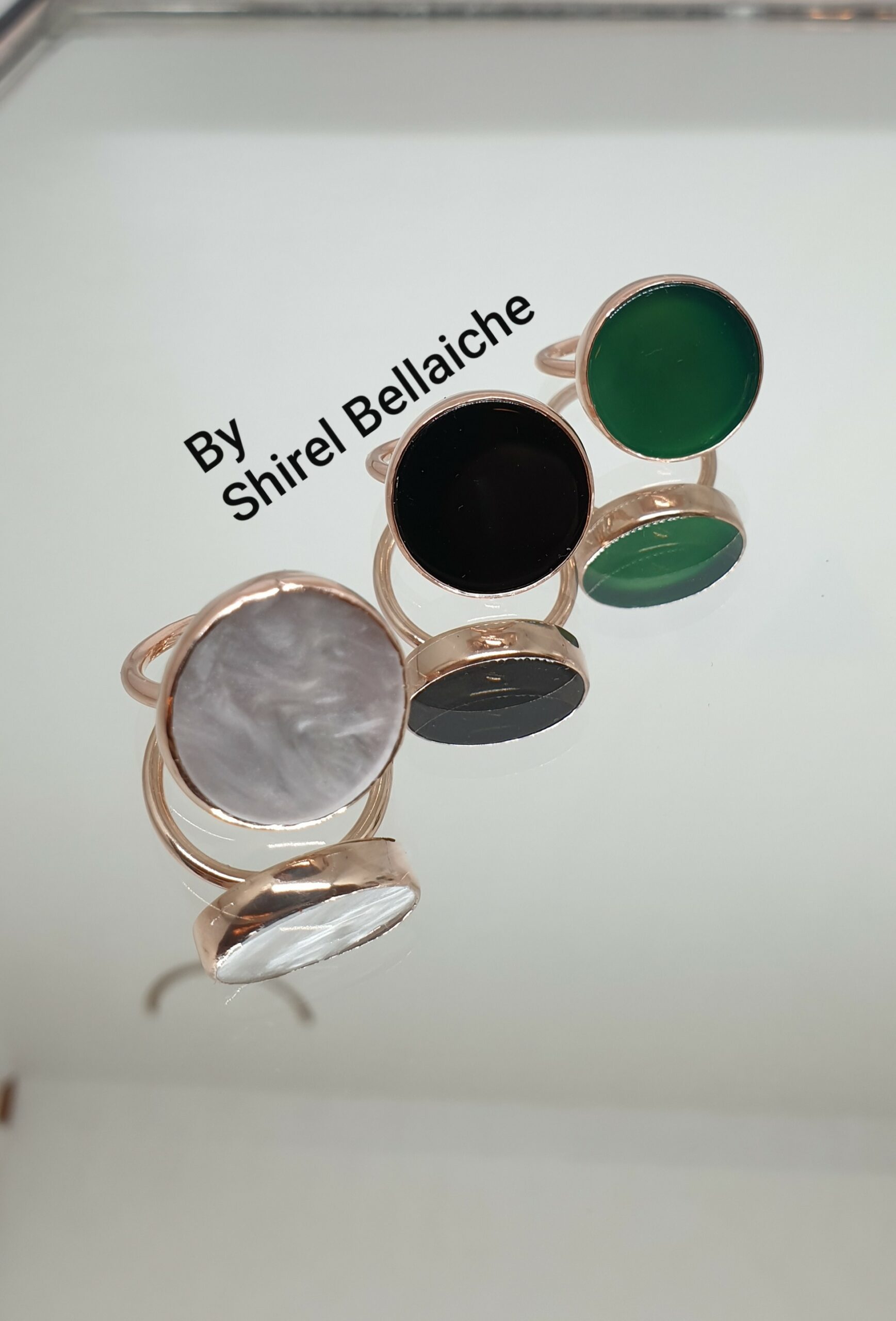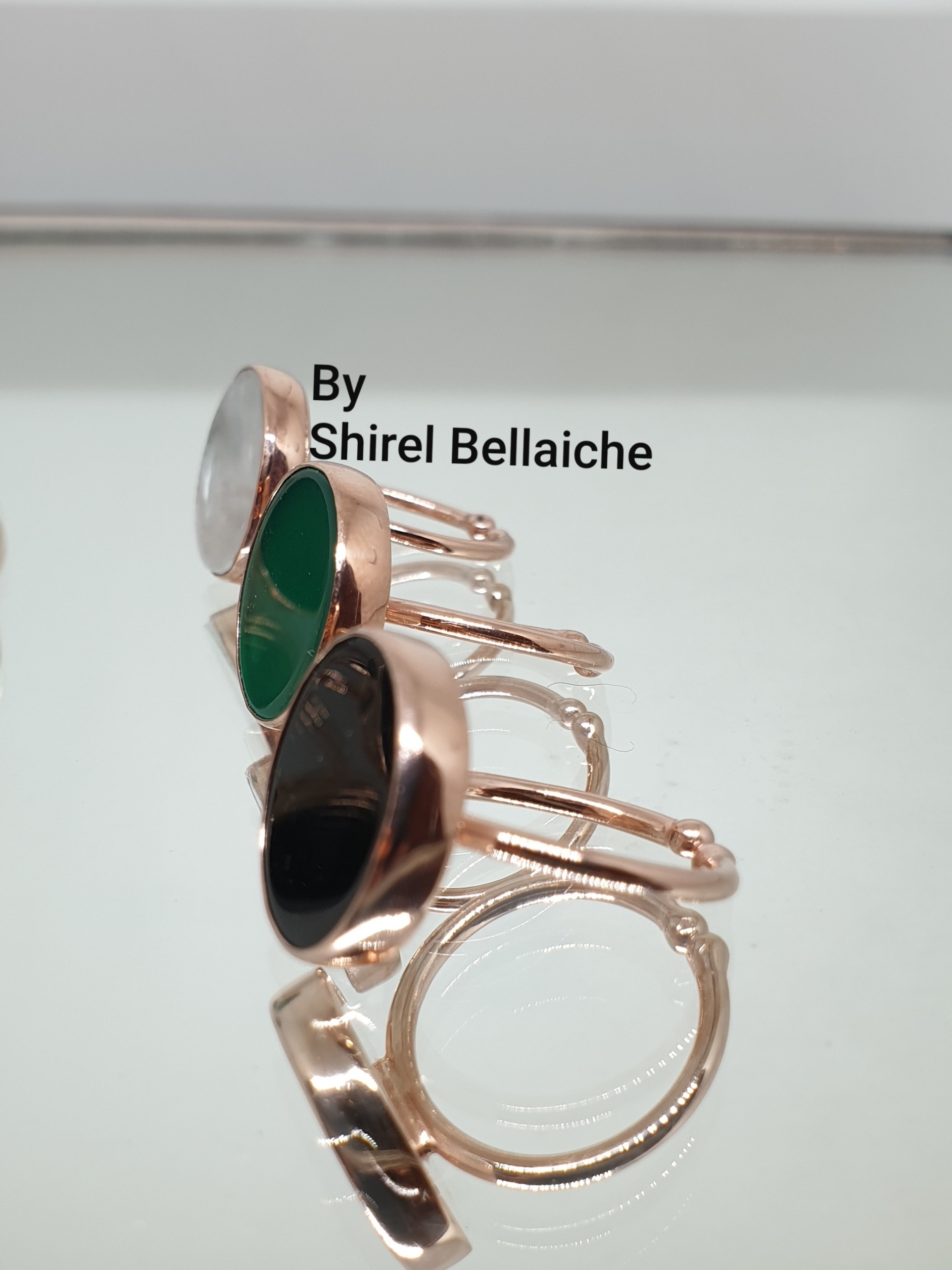 Bague réglable plaquée or rose avec pierre semi précieuses