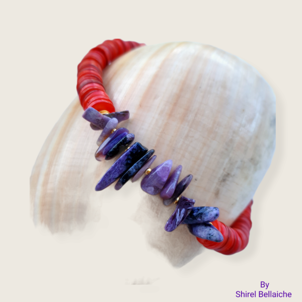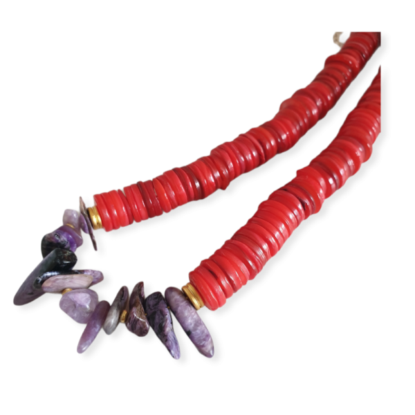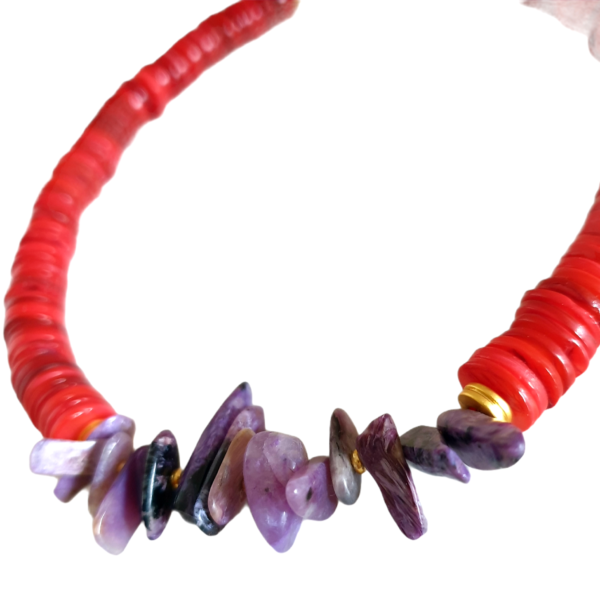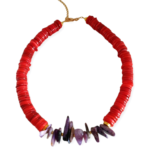 Ras de cou en perles disques de couleurs avec fermoir boué et médaille œil plaqué or