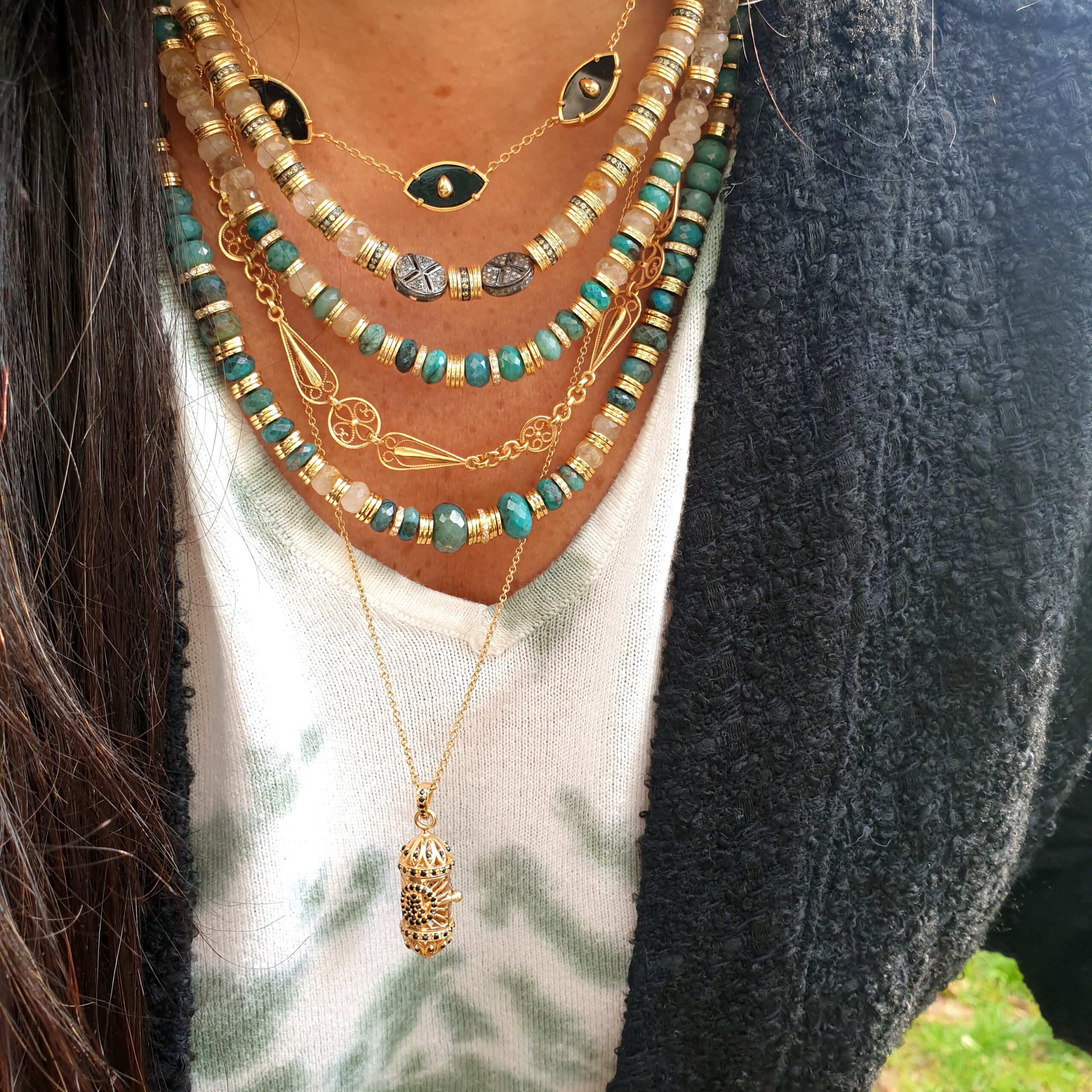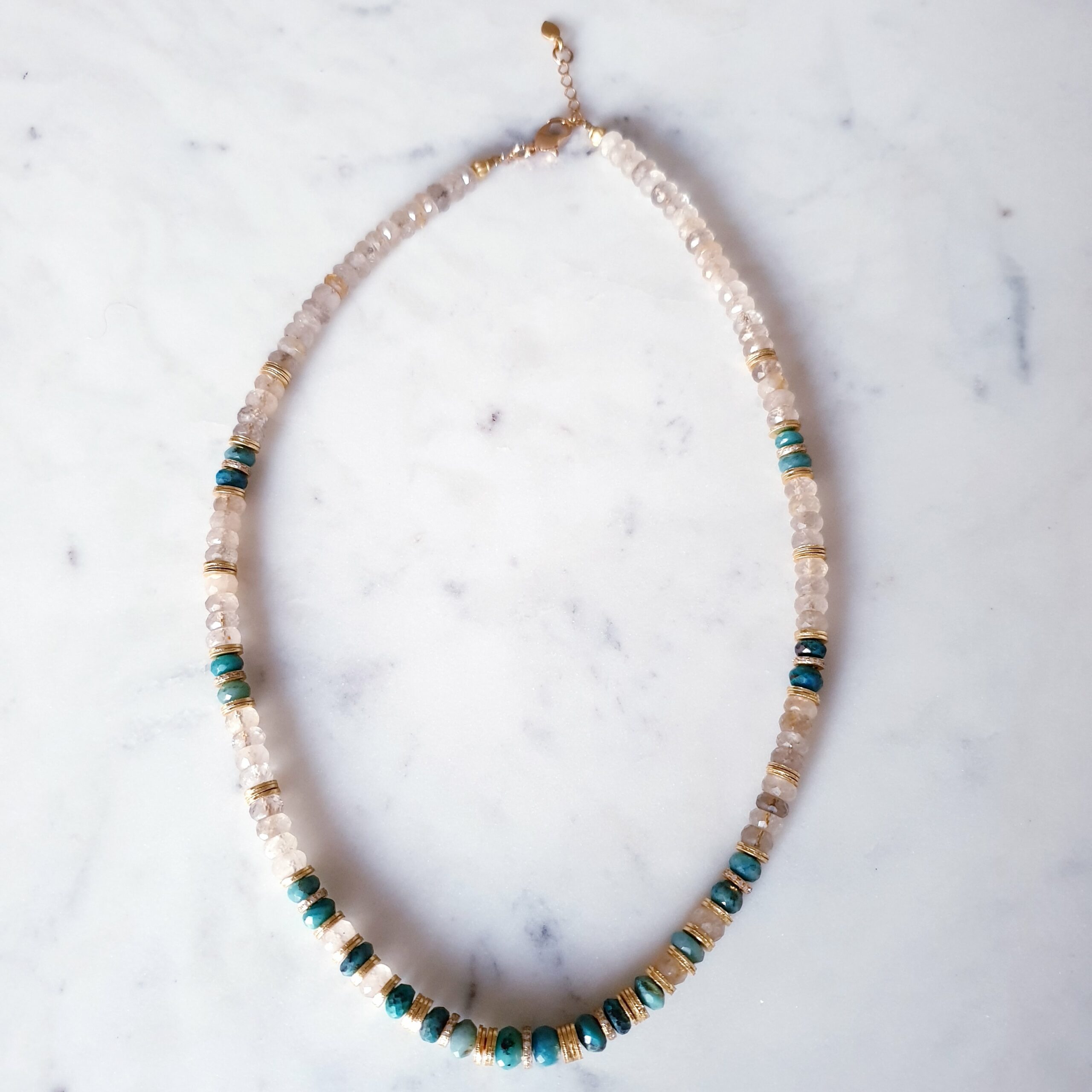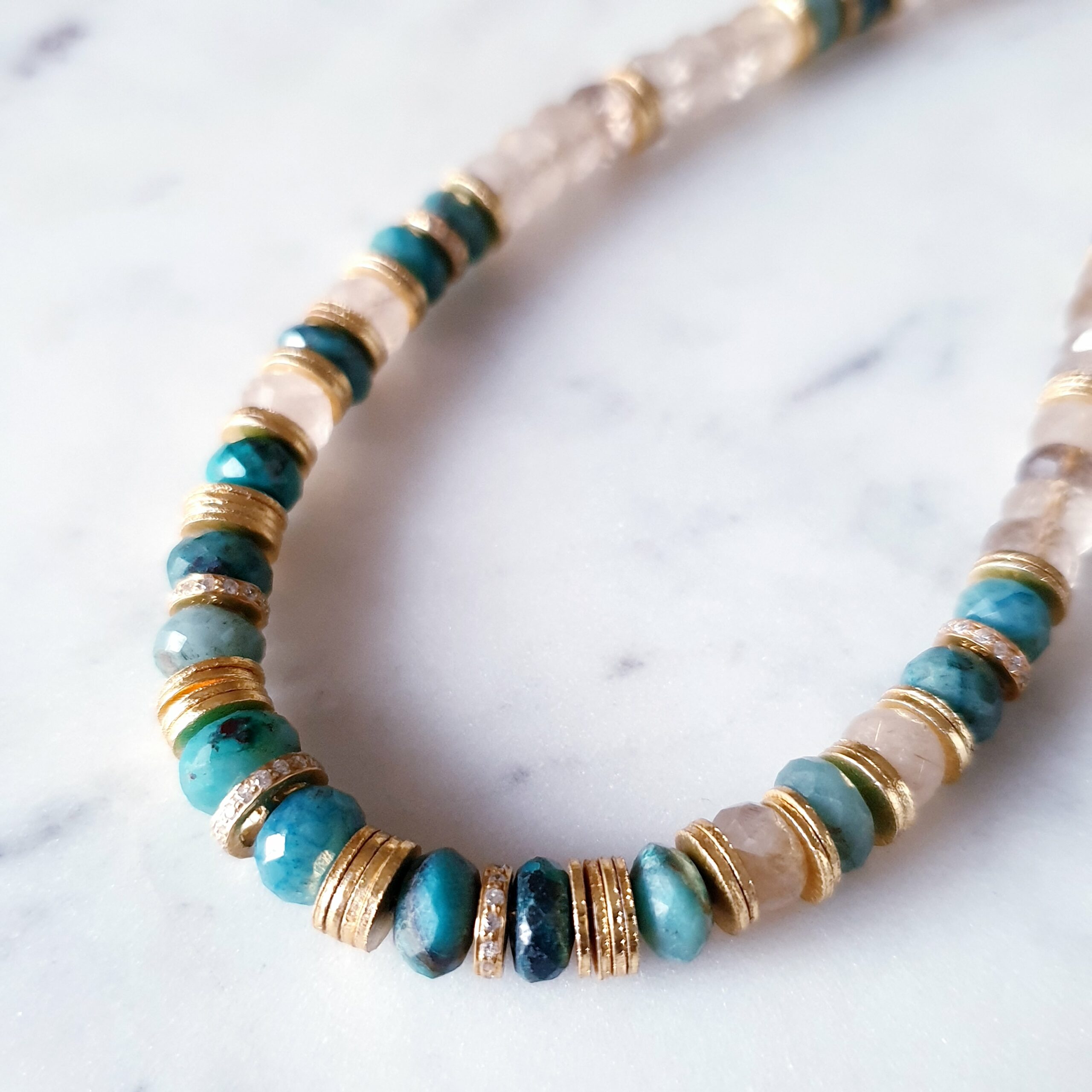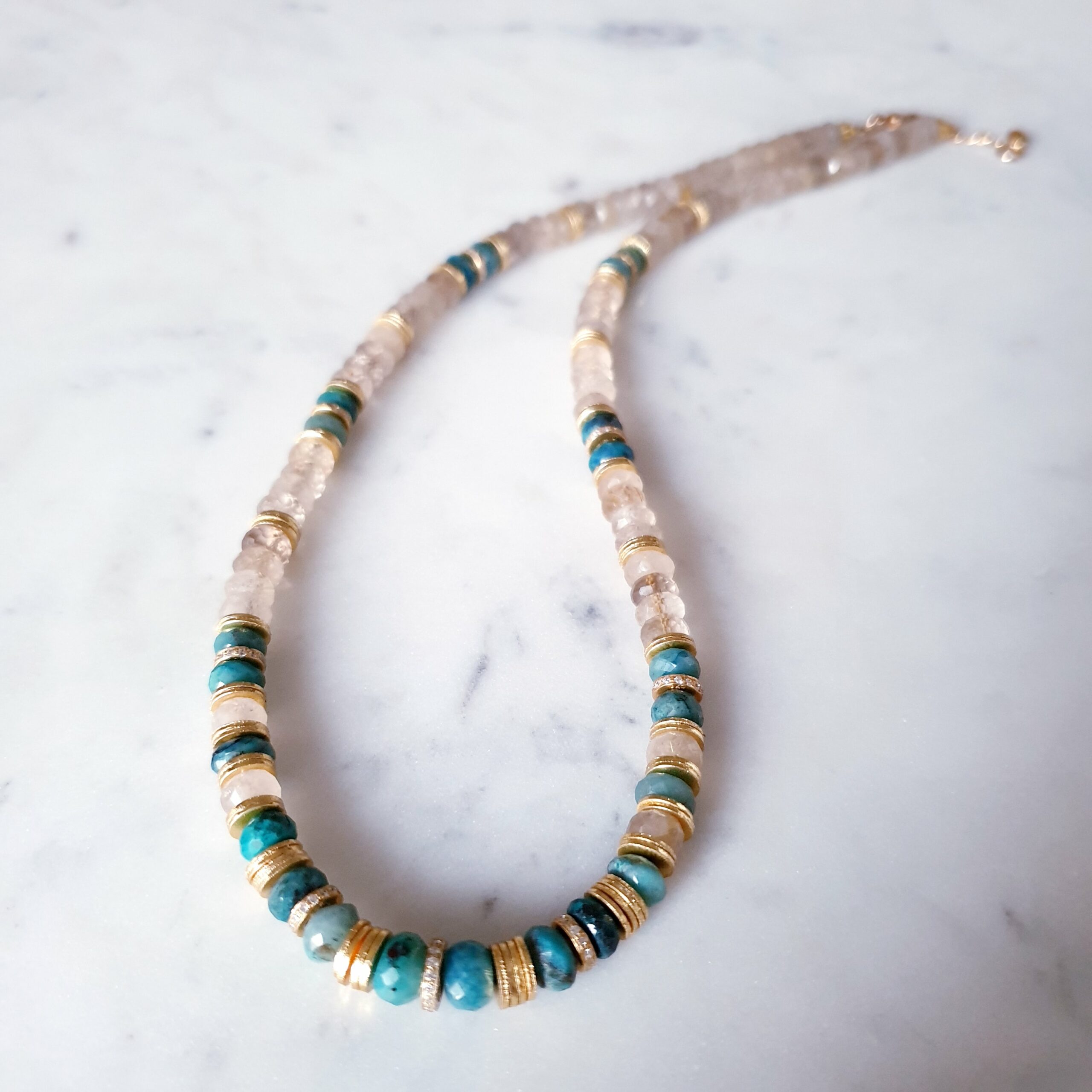 CHAMPAGNE est un collier en golden rutile et chrysocolle.