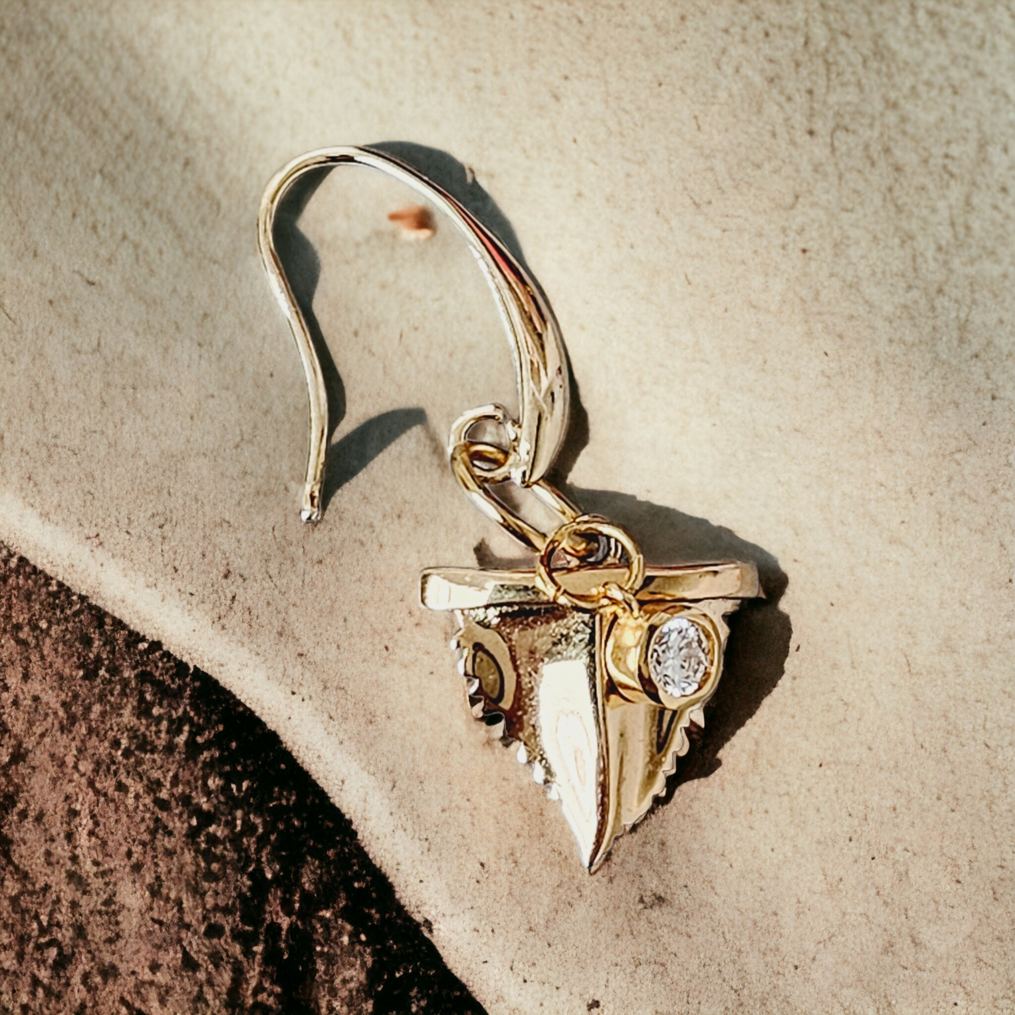 CHEYENNE est une mono boucle dent de requin toute plaquée or 3 microns avec un petit zircon.