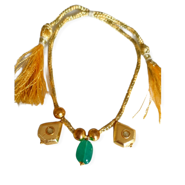 Le bracelet AINARA est la déclinaison du collier . Il est composé de trois petits yeux. Les pierres principales sont en émeraudes avec l’iris en rubis.