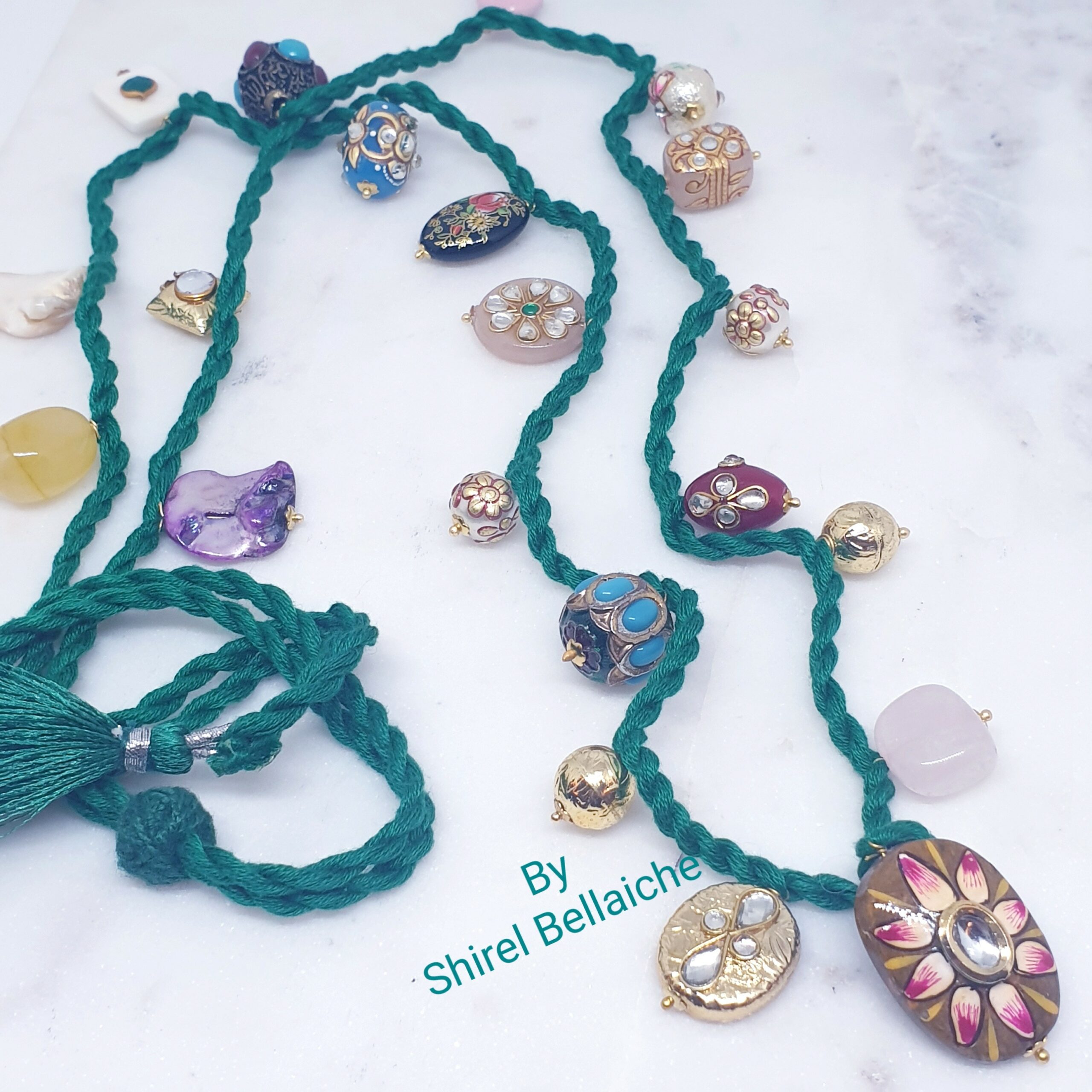 Chira est un sautoir sur cordon réglable orné de plusieurs charms aux inspirations indiennes . Le sautoir grisgris à l état pure qui fera ressortir votre coté ethnochic.