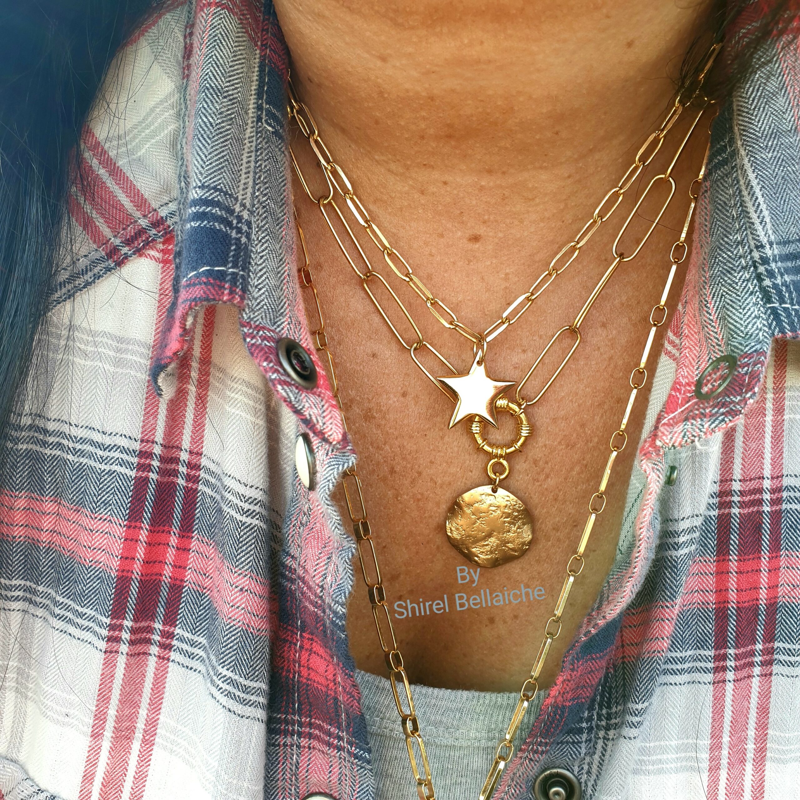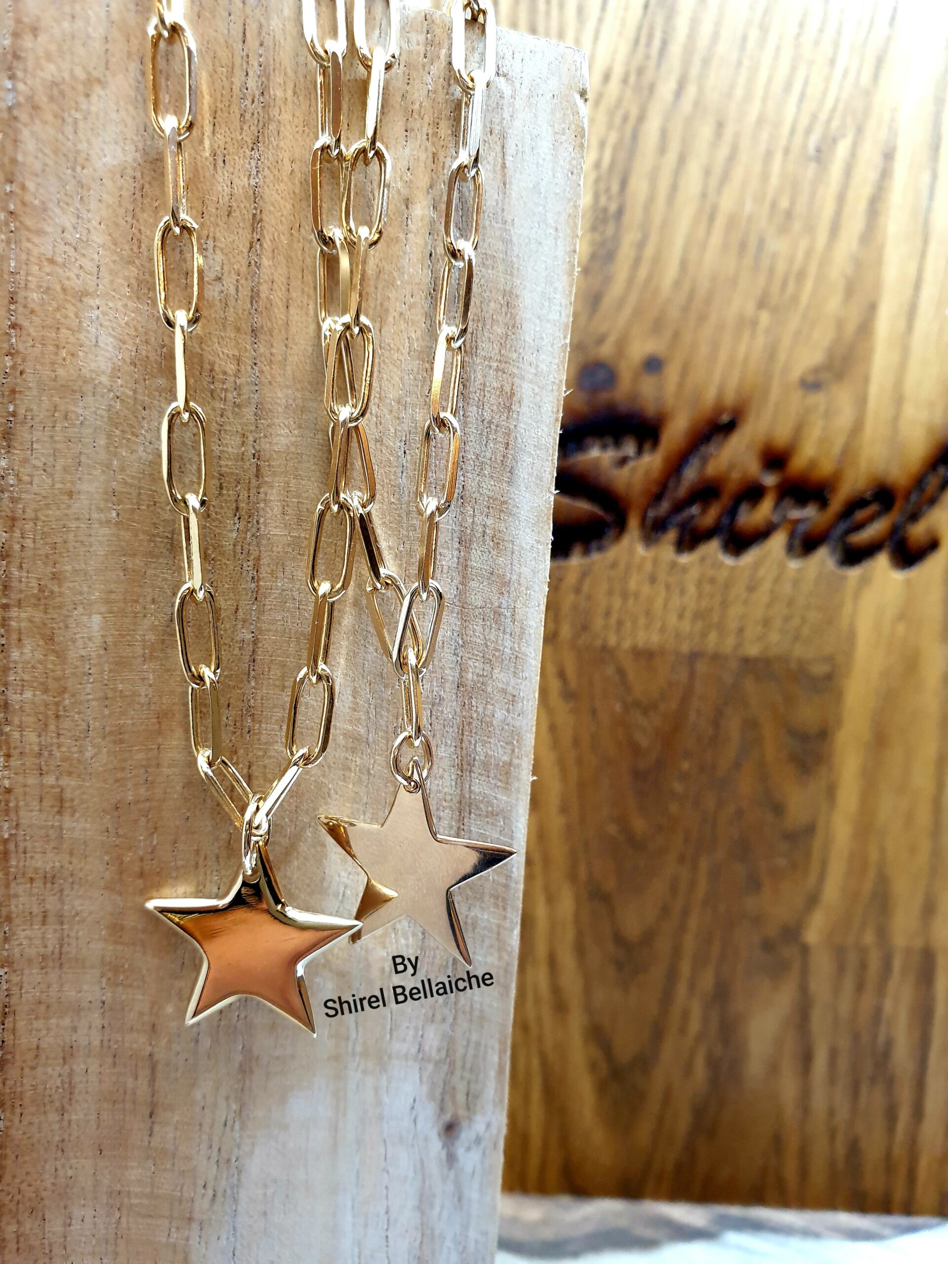 Collier étoile et chaîne maille rectangle en plaqué or 3 microns.
