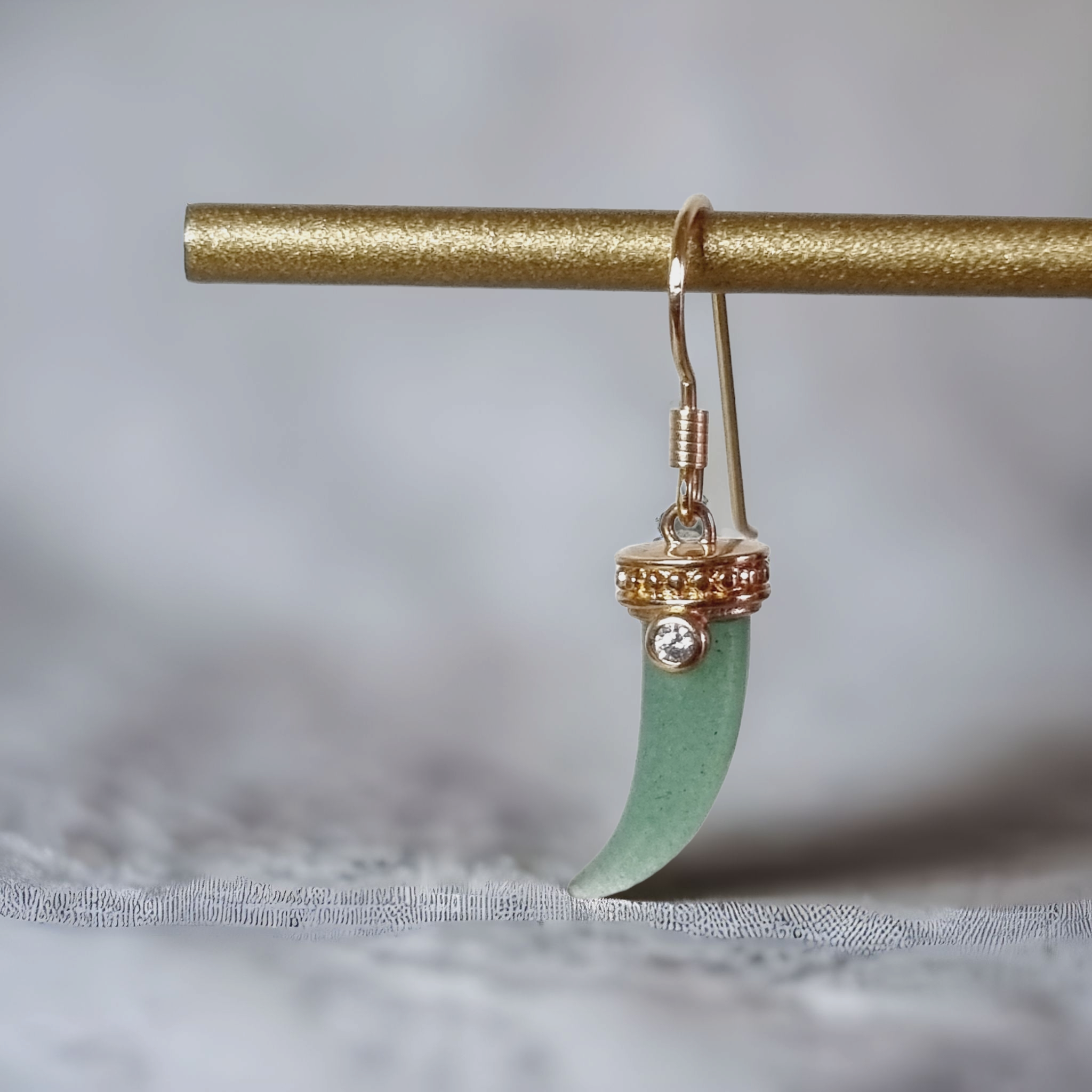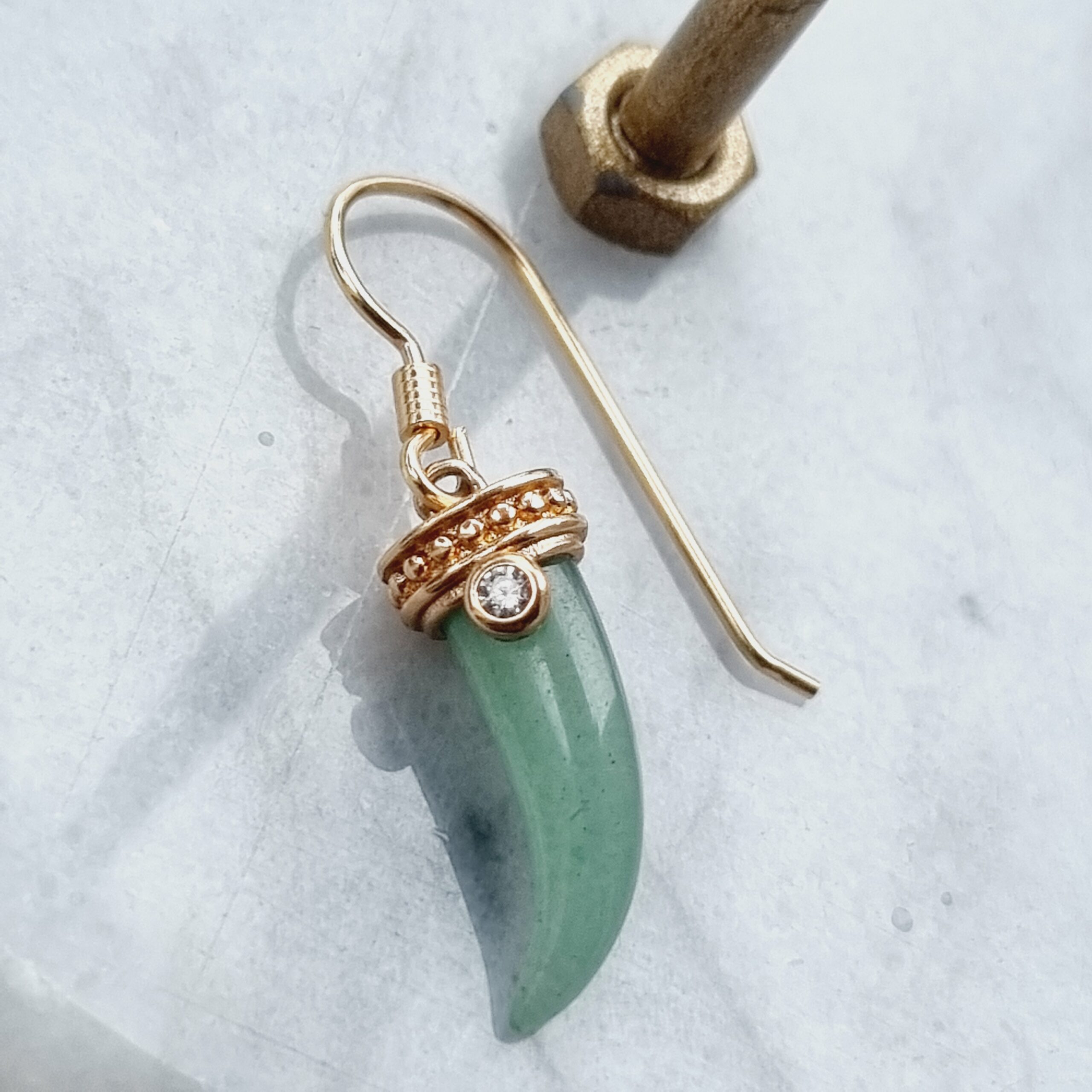 Mono boucle petite corne aventurine plaquée or 3 microns.