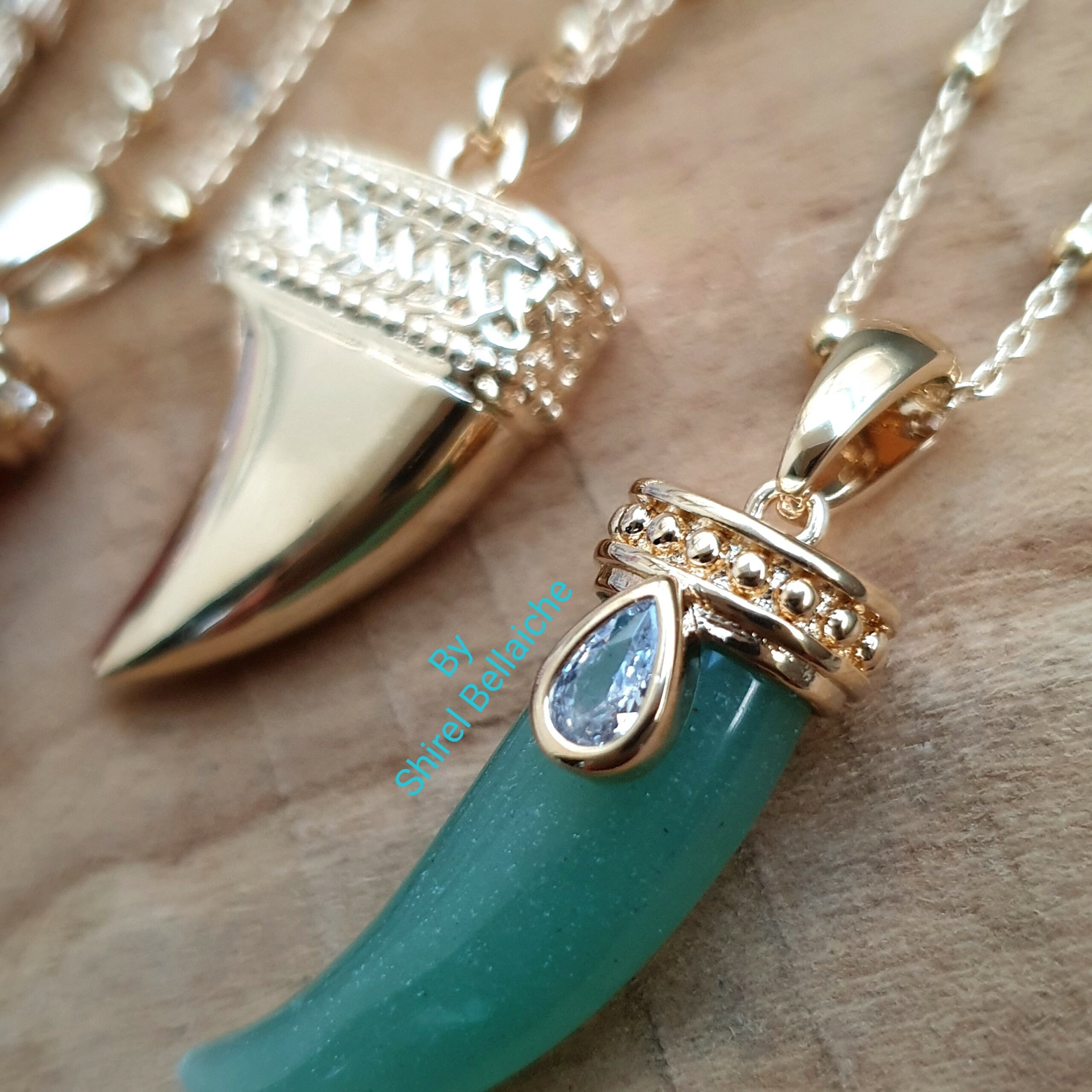 Sautoir 7 : pendentif dentrine opal pierre onyx verte serti de pierres onyx noire avec une chaine plaquée or de 50 cm