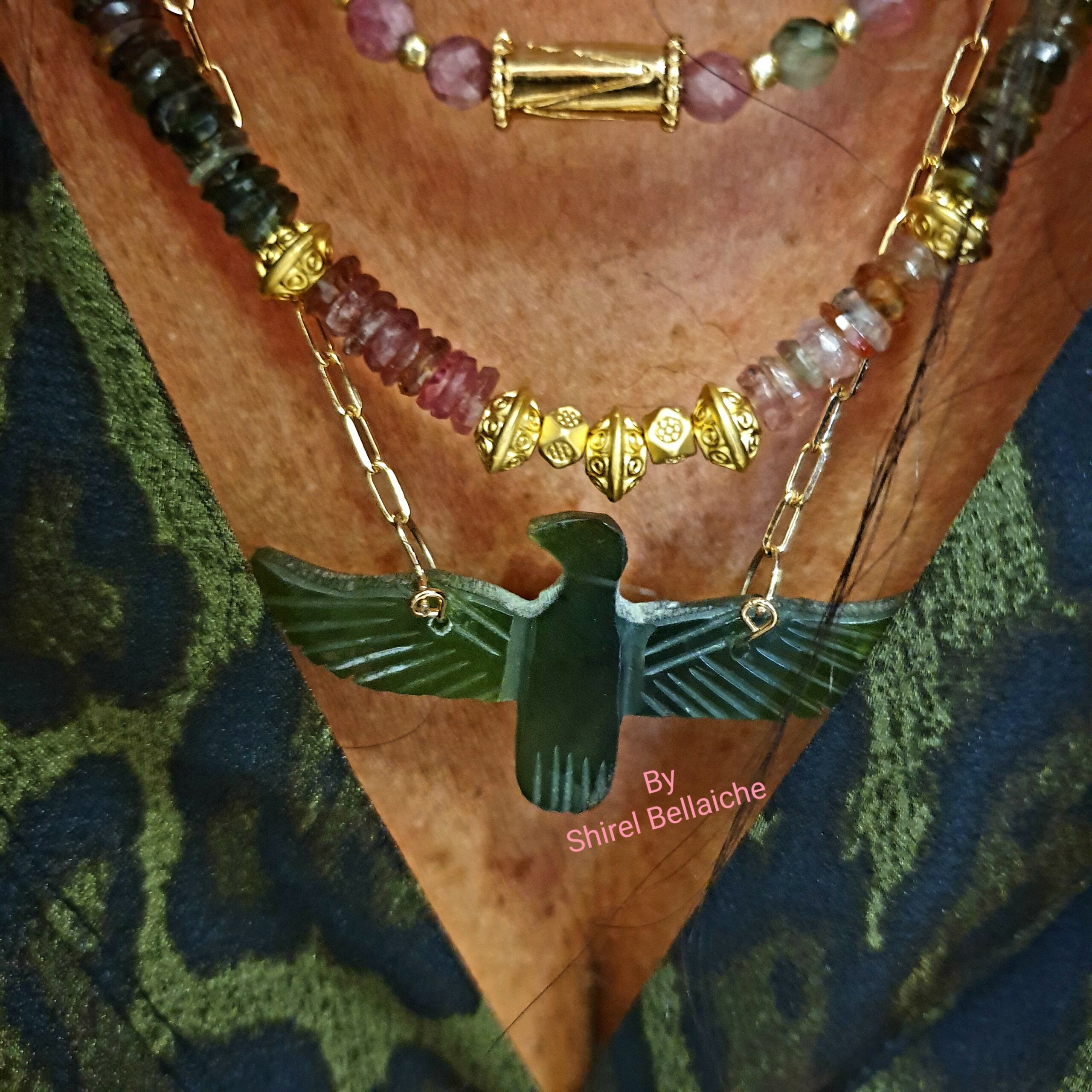 HARPIA est un collier avec un pendentif aigle entièrement sculpté à la main dans une pierre naturelle .