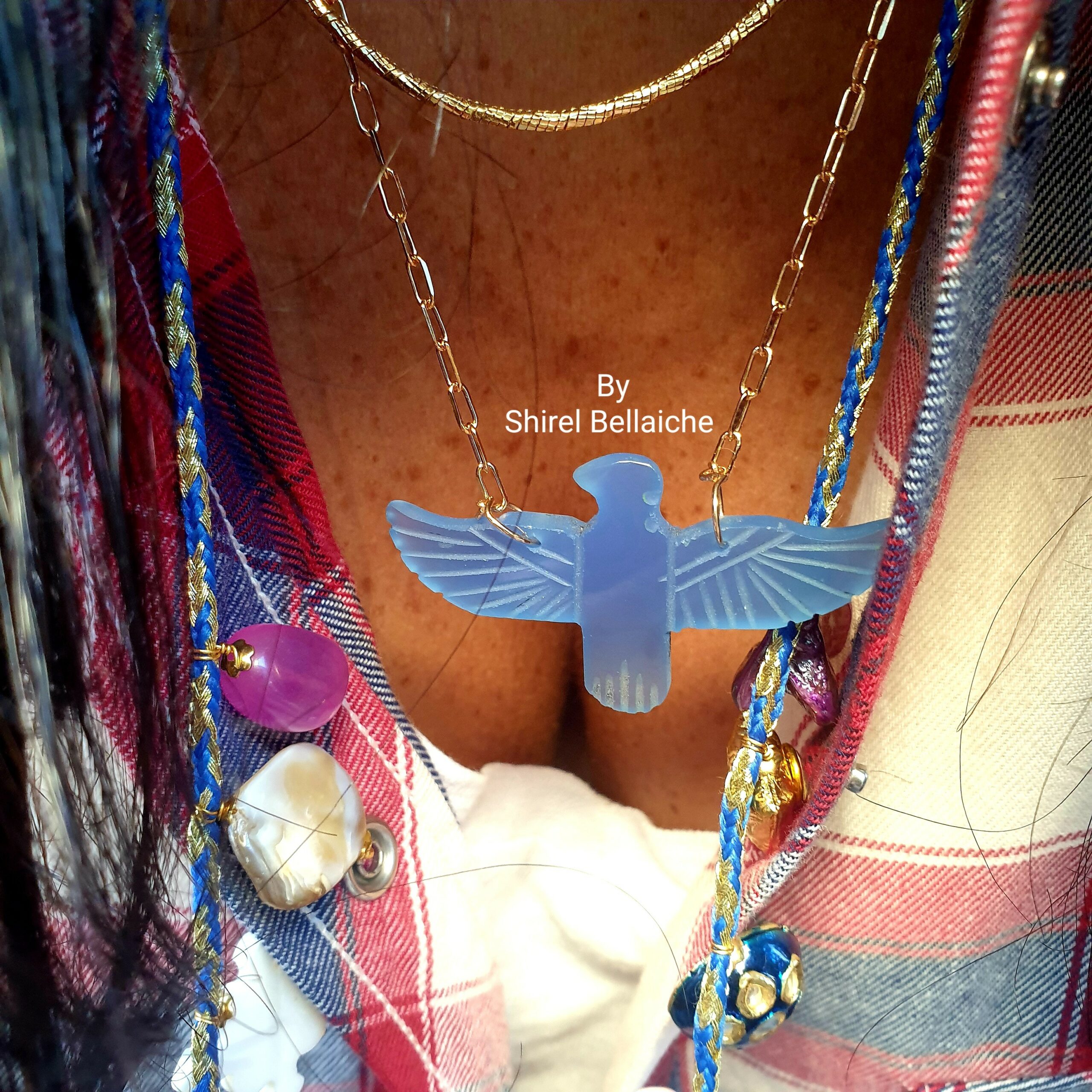 HARPIA est un collier avec un pendentif aigle entièrement sculpté à la main dans une pierre naturelle .