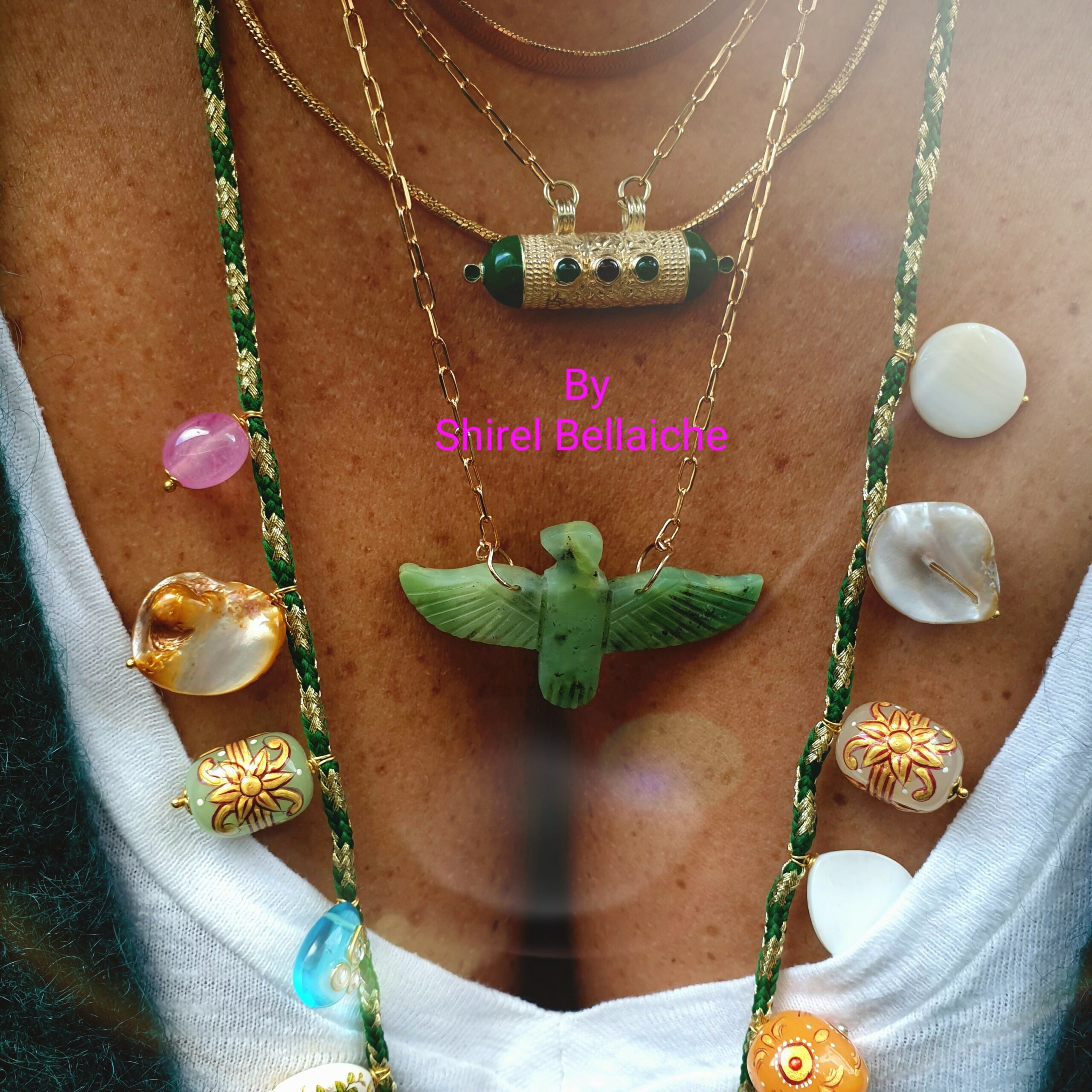 Ce modèle est disponible en deux versions ras de cou longueur de chaîne 38 cm ou sautoir avec une longueur de chaîne de 90 cm ( peux être porté en double tours)