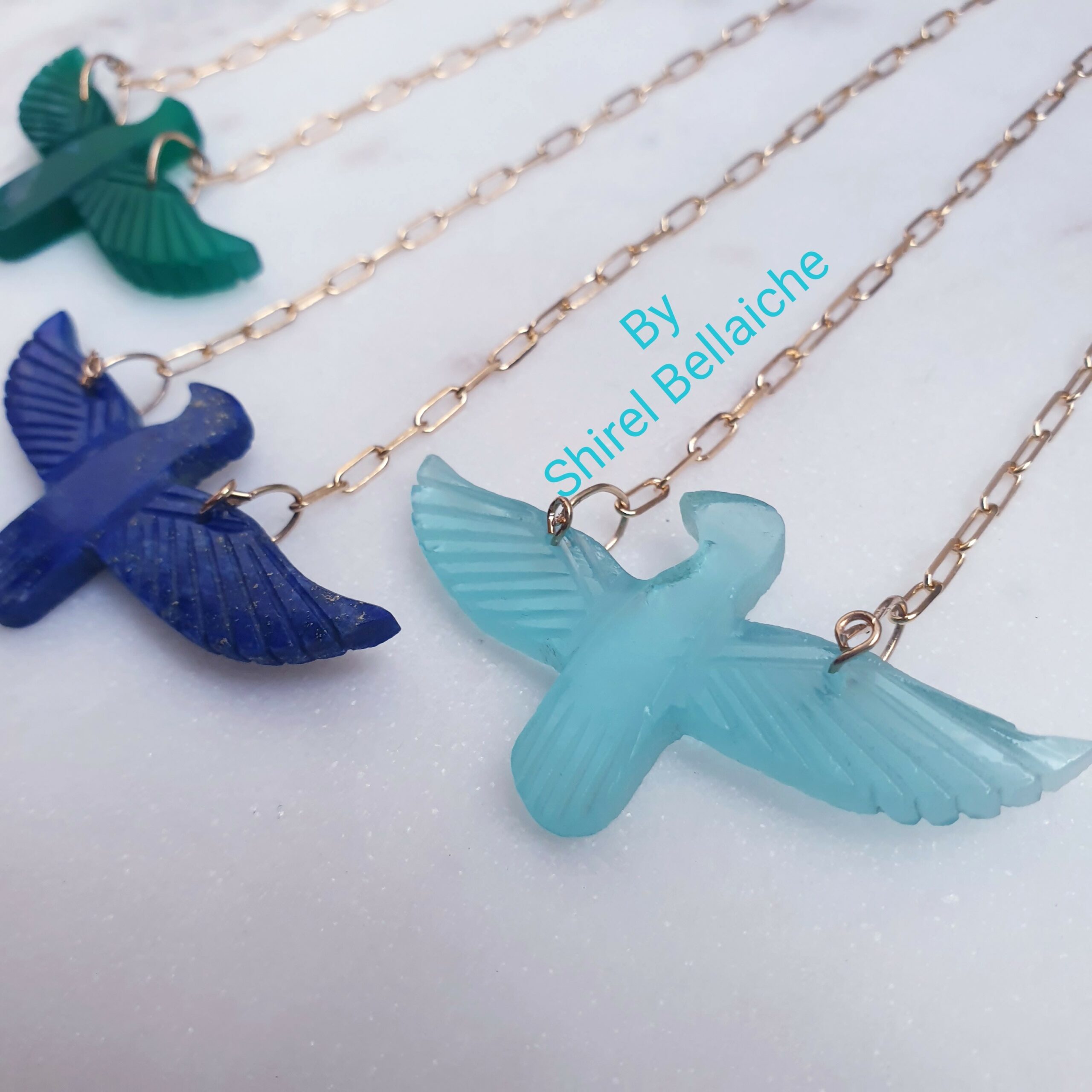 Collier pendentif d aigle en pierres naturelles sculptées à la mains.