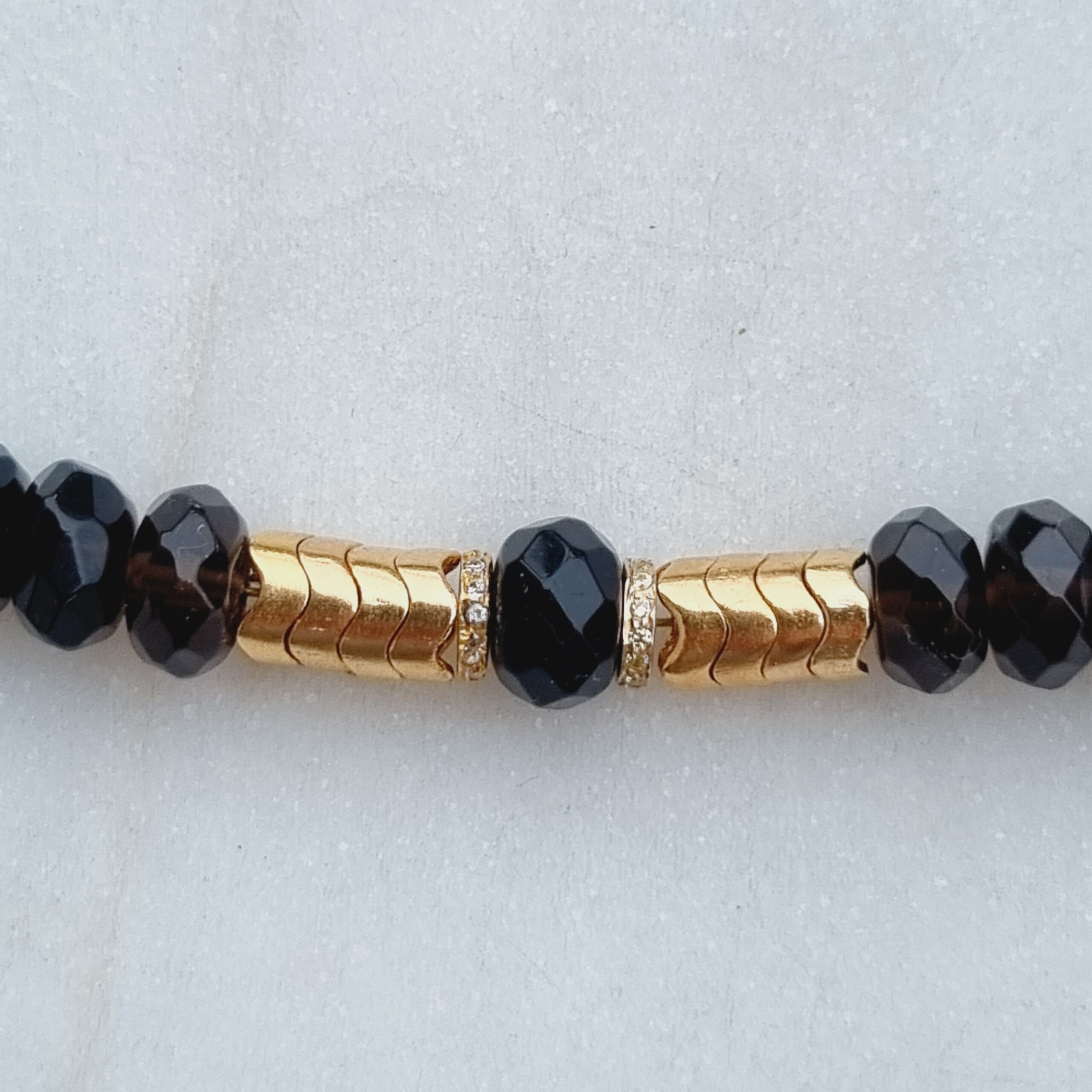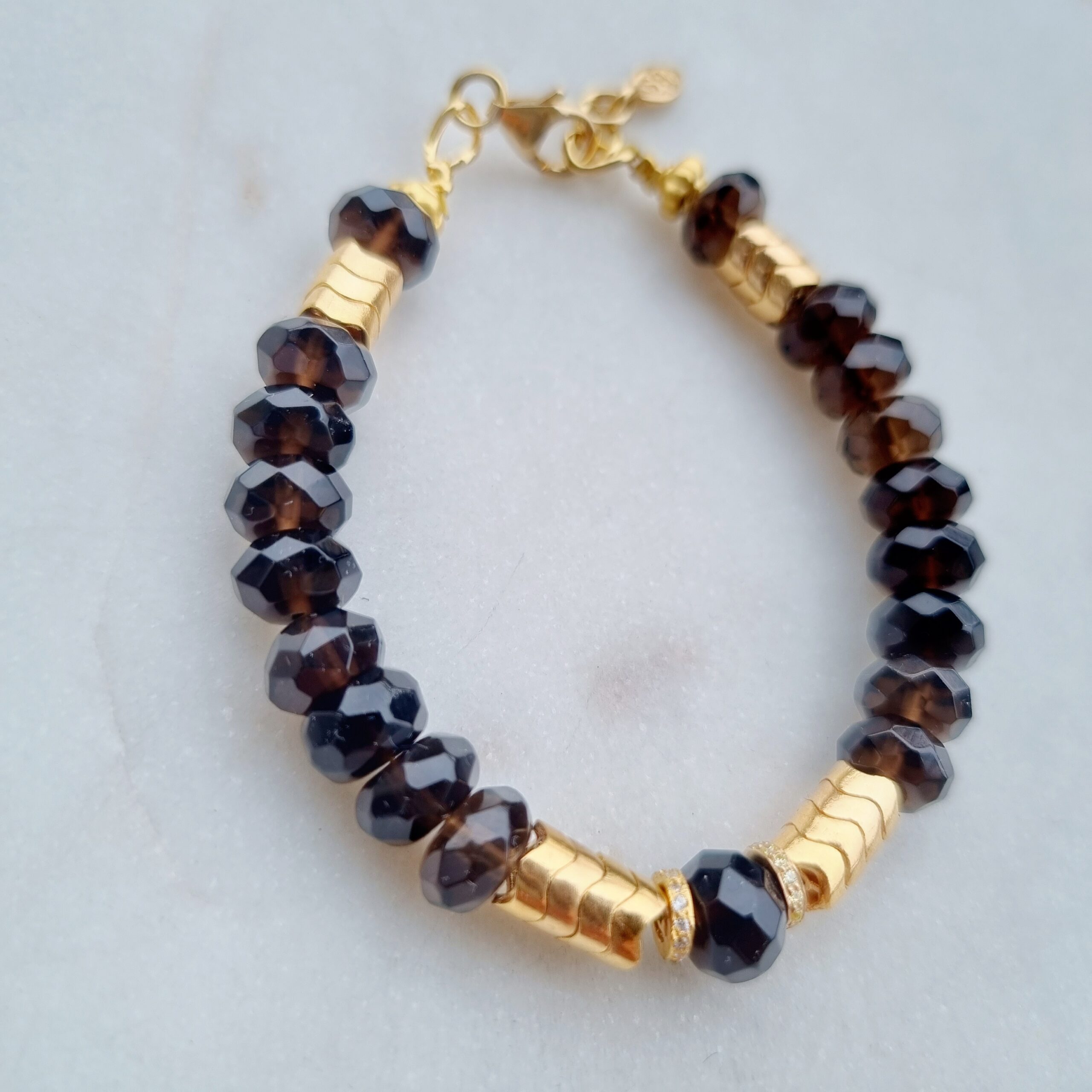 IMPERIAL est tout en quartz fumé, zircons et laiton plaqué or.