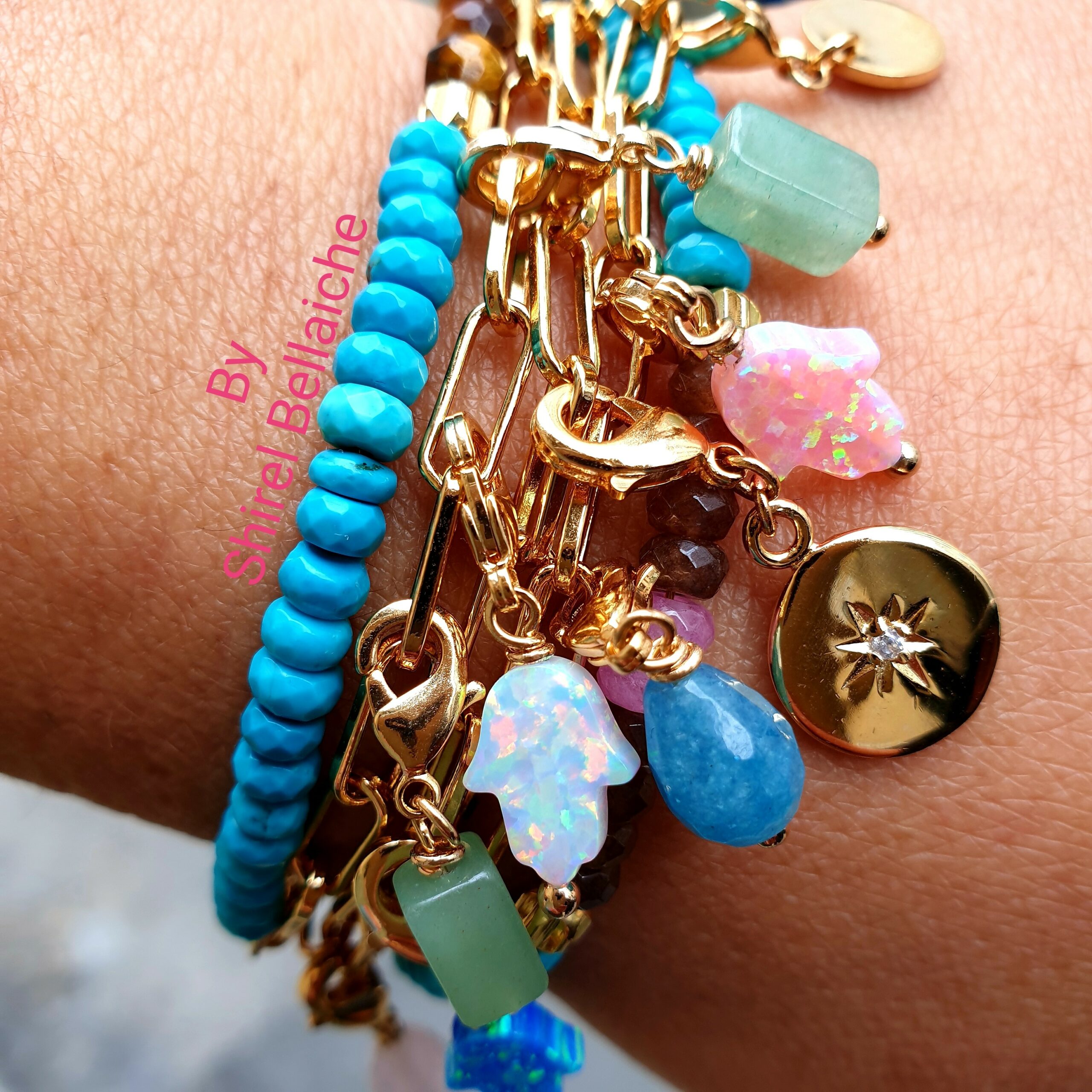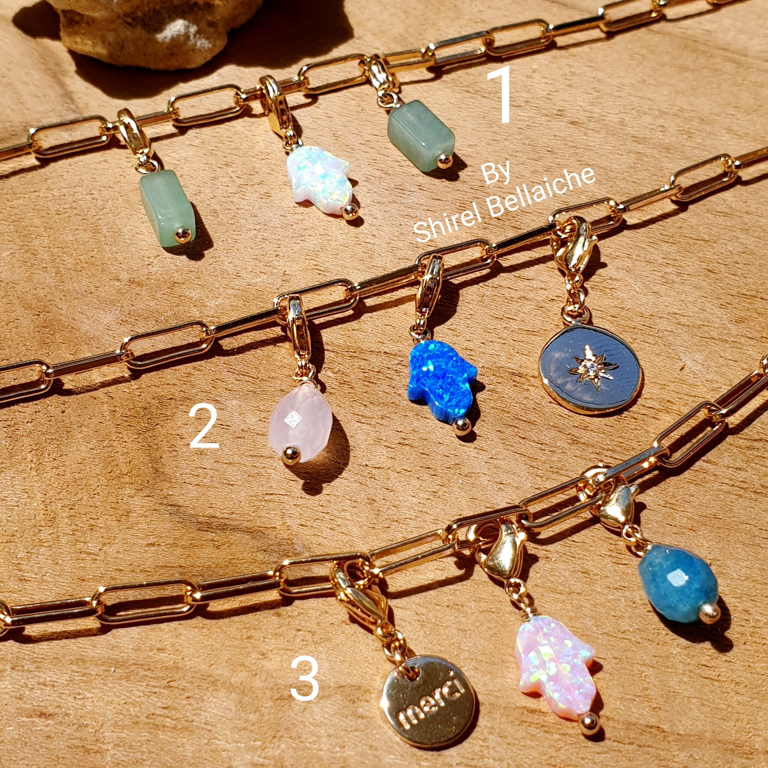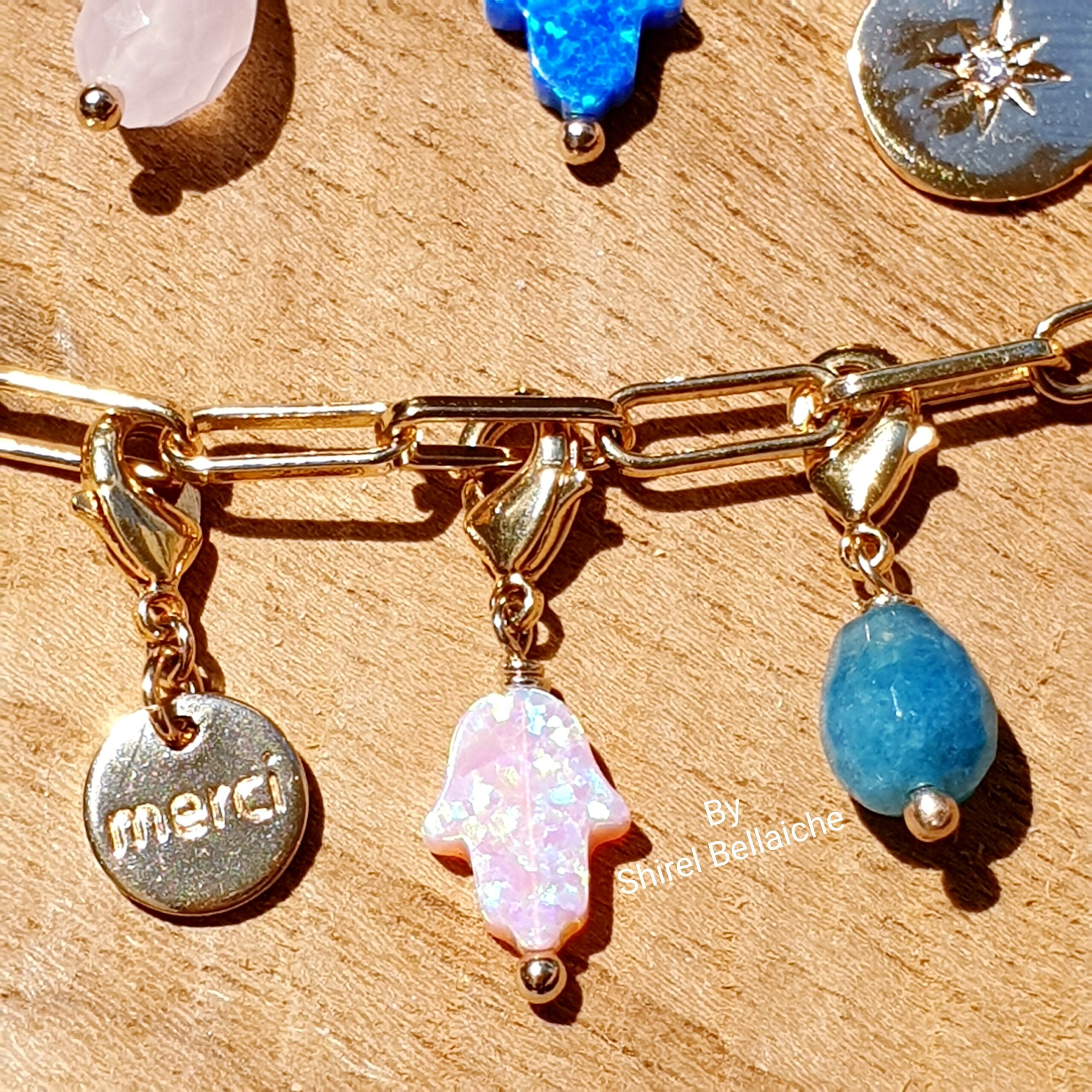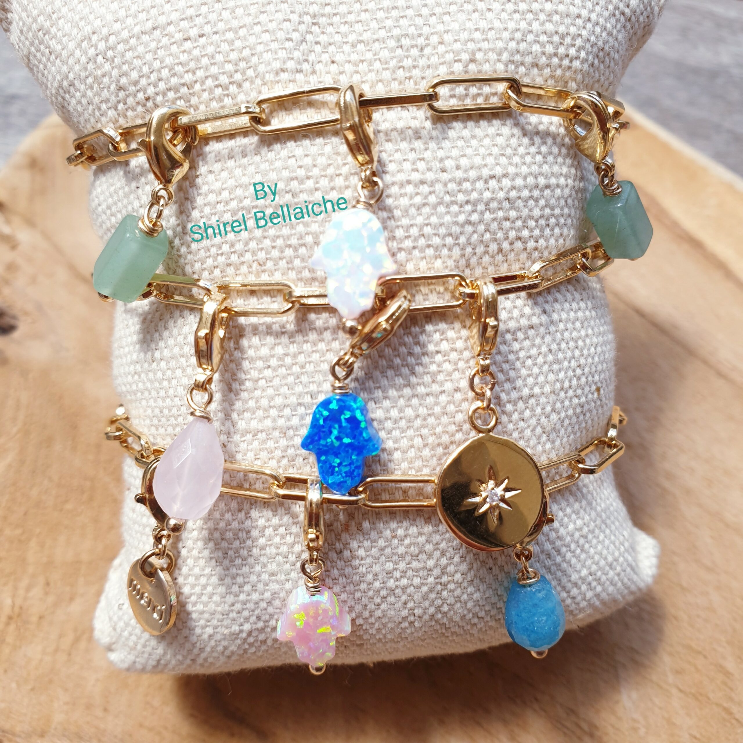Bracelets multi charms mousquetons, idéal pour intervertir selon ses envies.