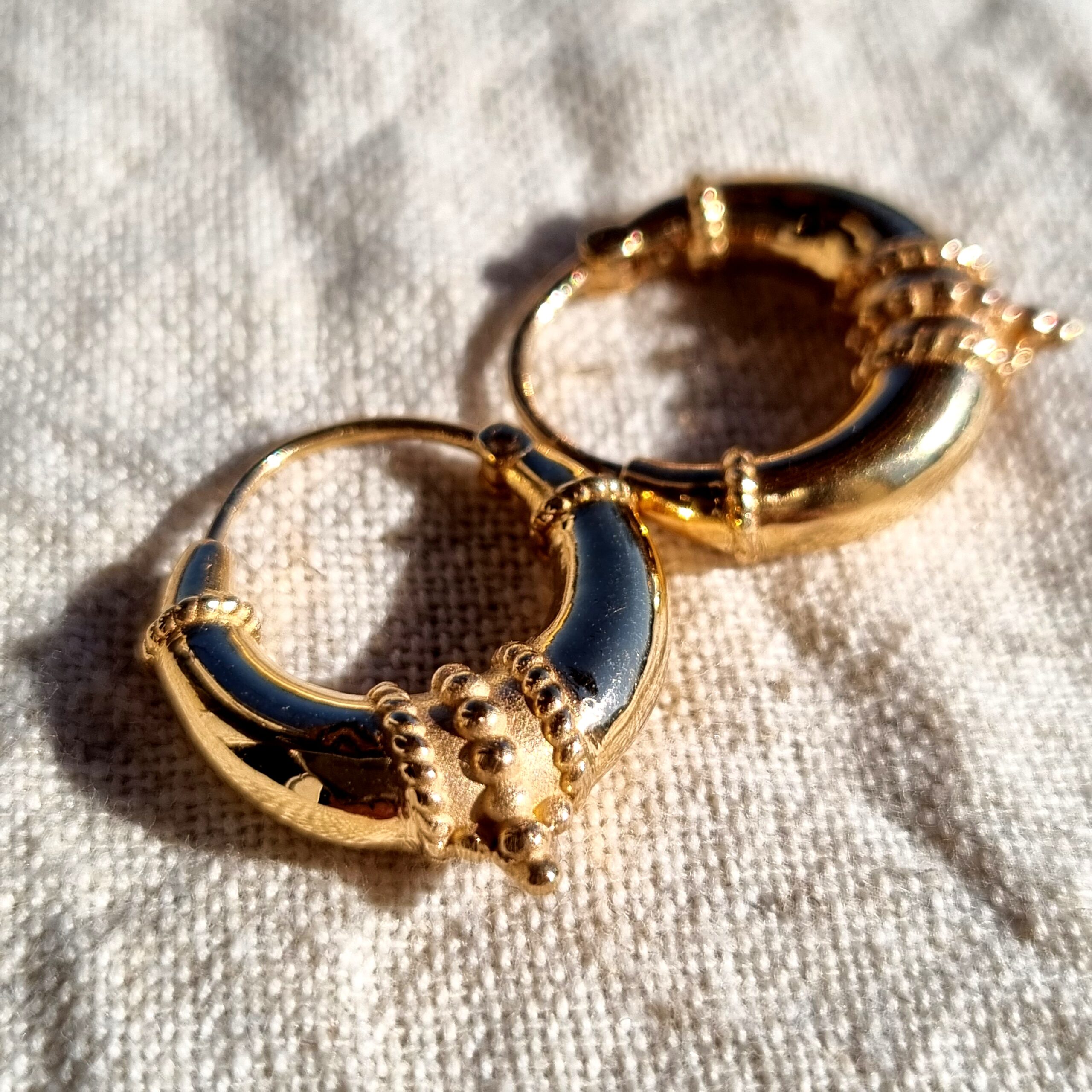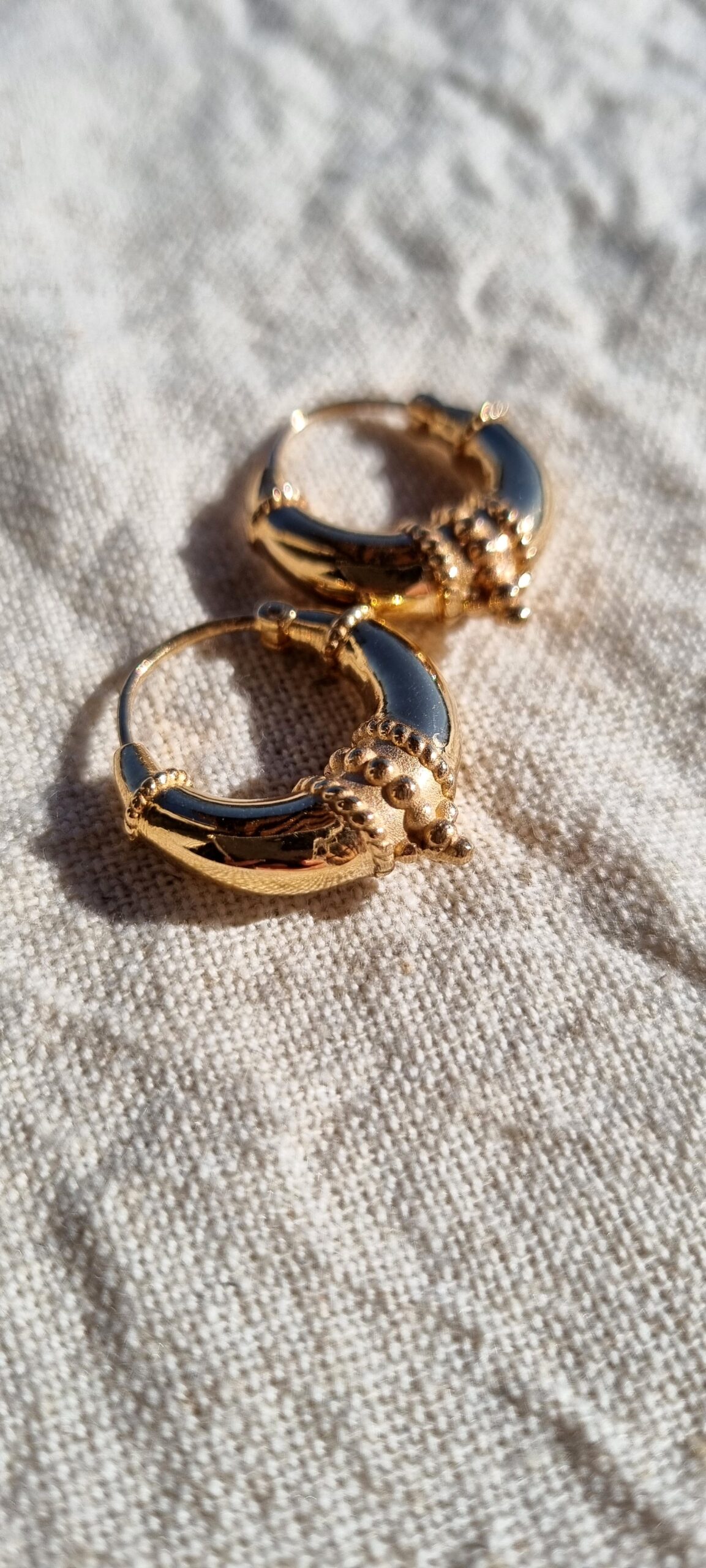 Laly, est une paire de mini créoles aux influences afro orientales mais surtout Vintage. Elles sont vendues par paire.