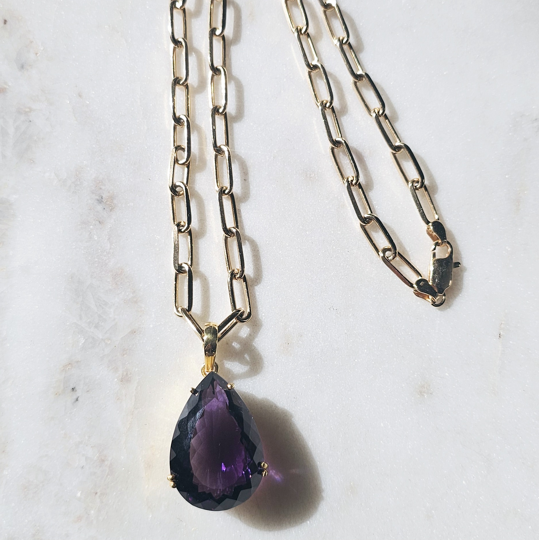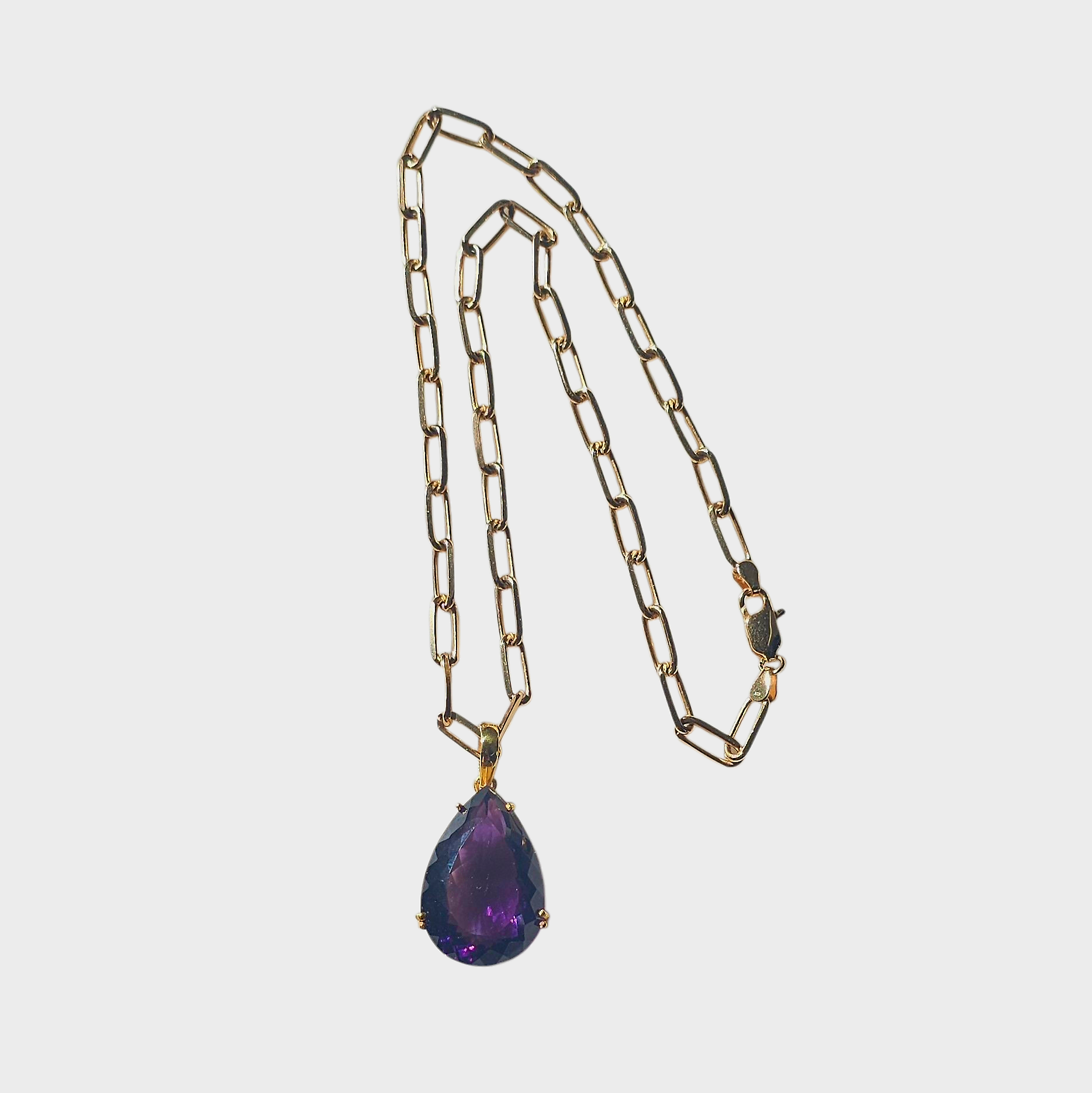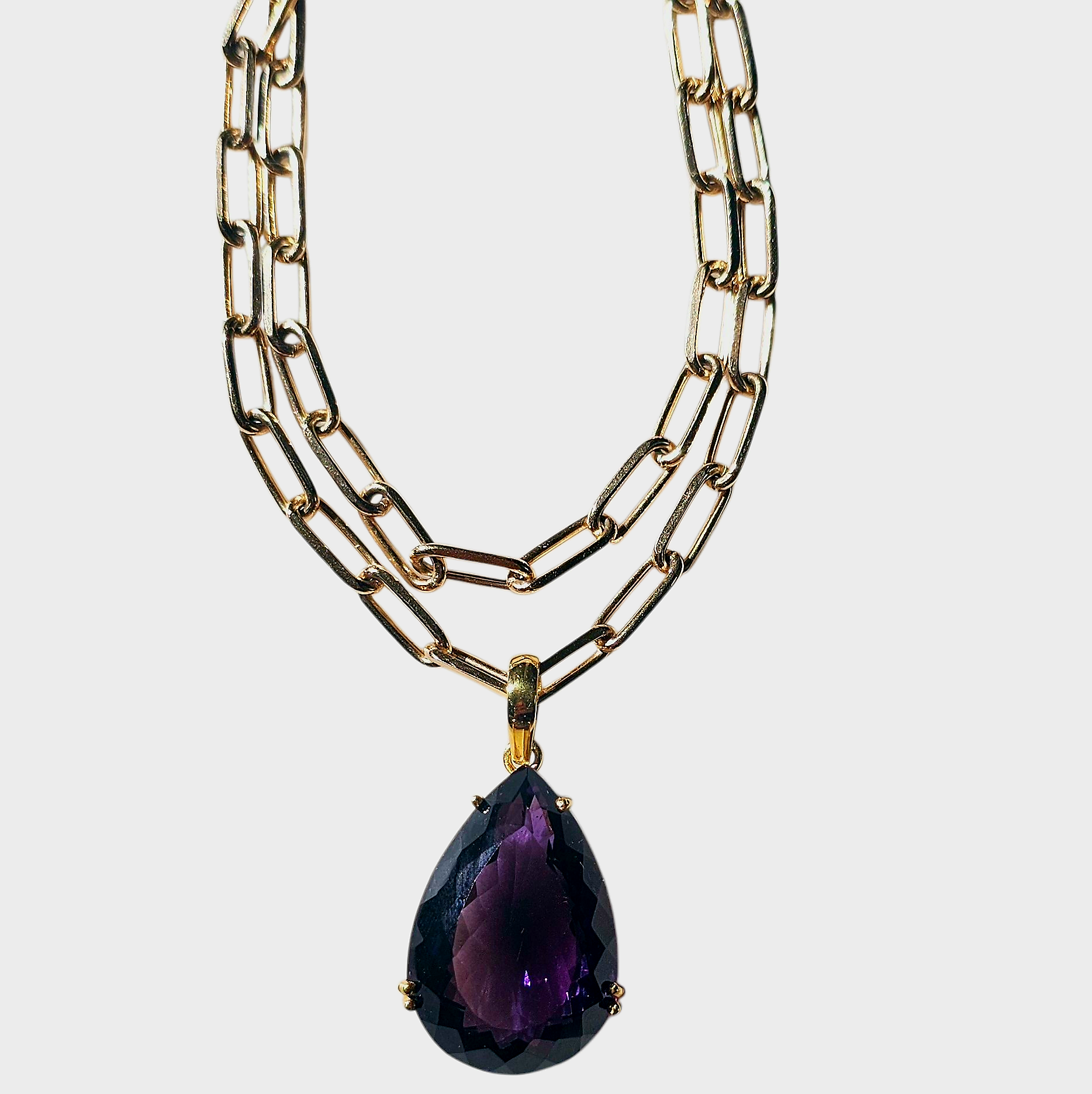 MOLLY est un collier majestueux et unique en son genre grâce à son incroyable pendentif goutte singulière améthyste taillée façon diamant et de part sa grande taille qui fait toute la différence.