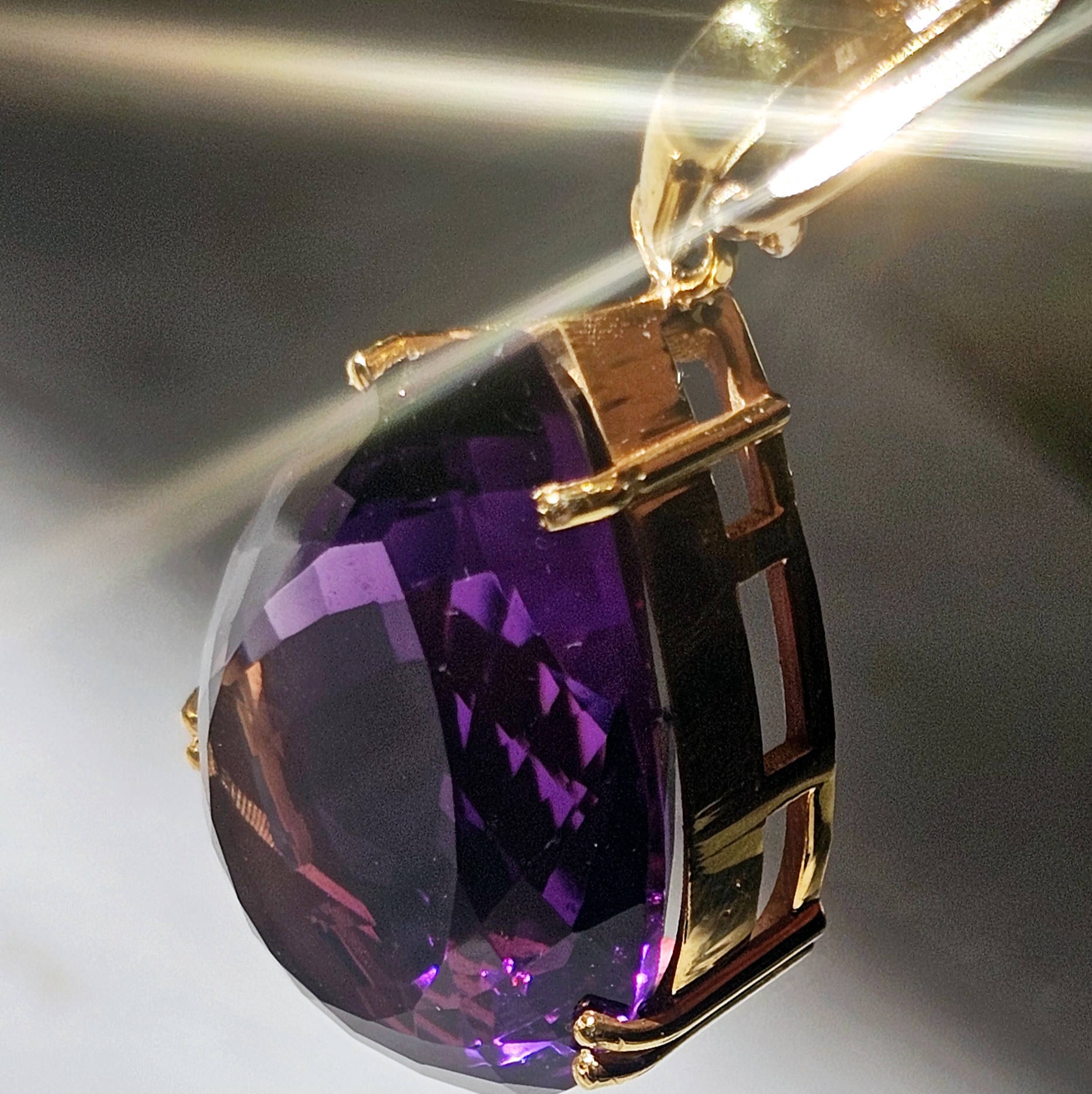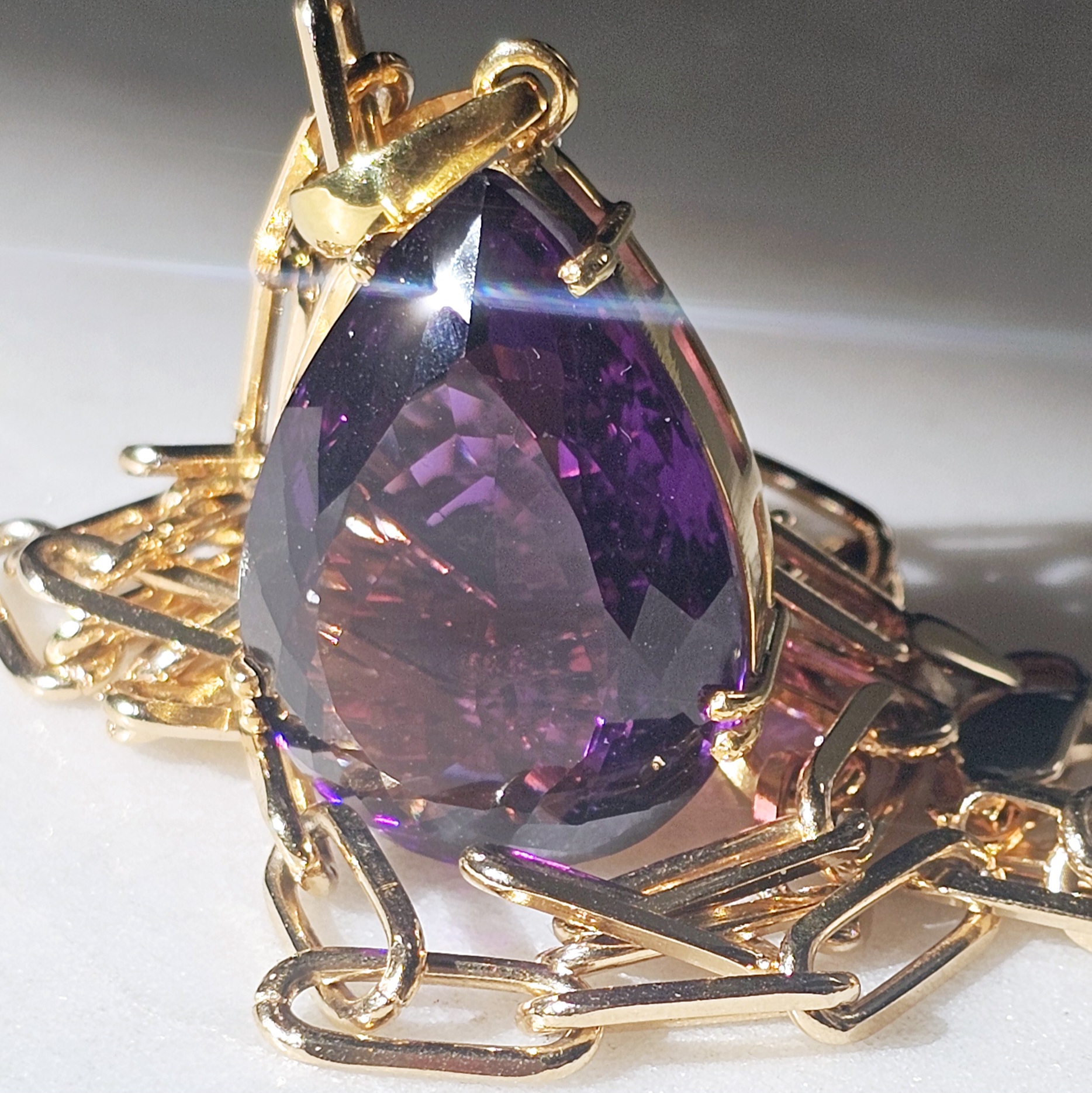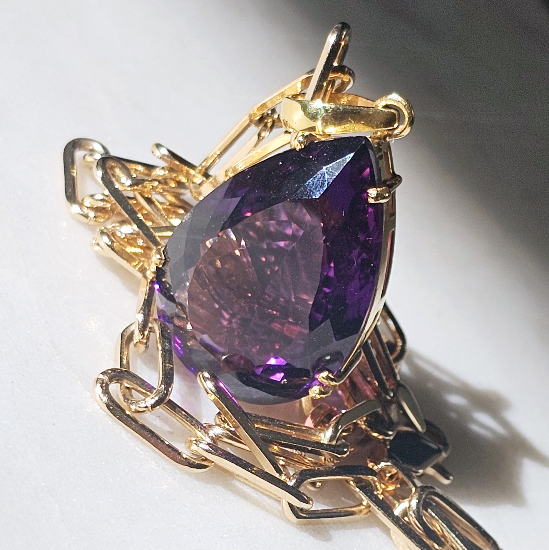 MOLLY est un collier majestueux et unique en son genre grâce à son incroyable pendentif goutte singulière améthyste taillée façon diamant et de part sa grande taille qui fait toute la différence.