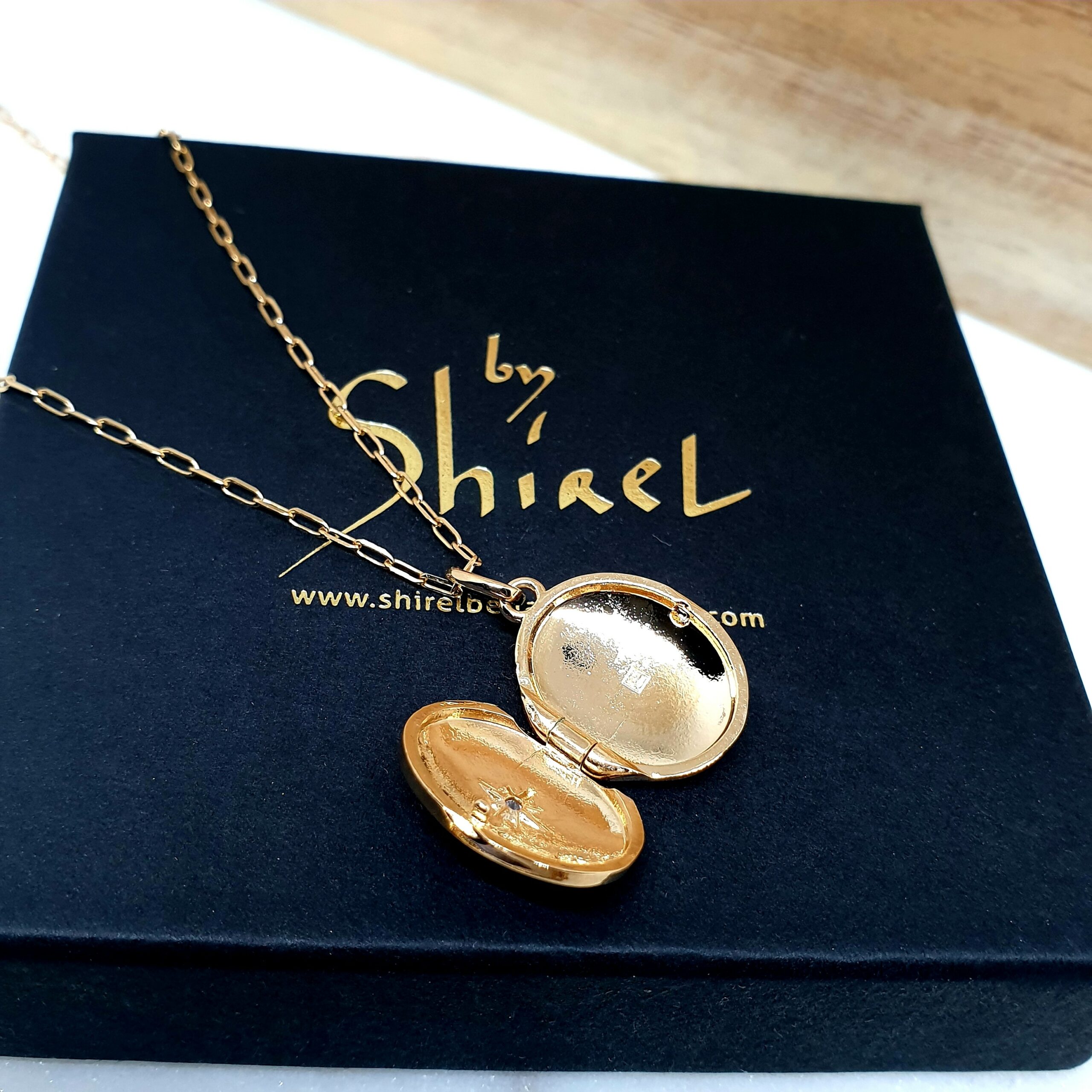 Collier chaîne et pendentif locket plaqué or 3 microns, pendentif avec motif étoile du nord incrusté d un zircon blanc.