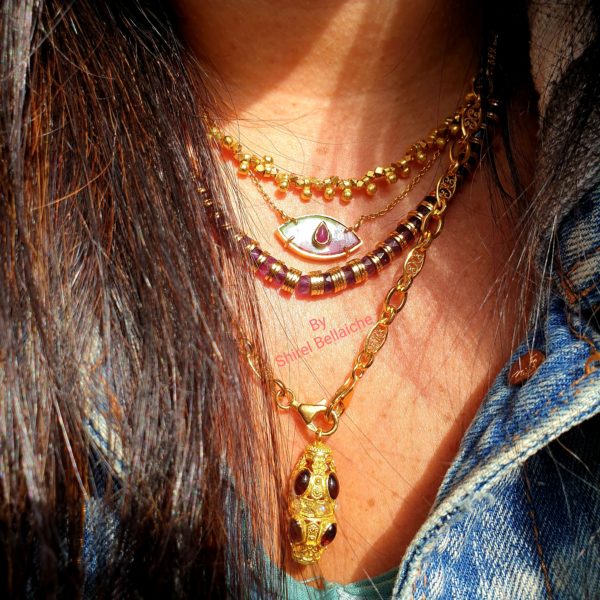 Ce modèle est disponible en deux versions ras de cou longueur de chaîne 38 cm ou sautoir avec une longueur de chaîne de 90 cm ( peux être porté en double tours)