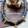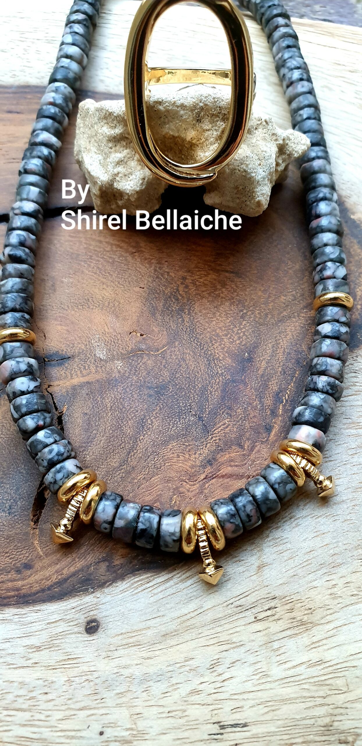 Ras de cou de 38 cm en perles semi précieuses et pampilles plaqués or 3 microns