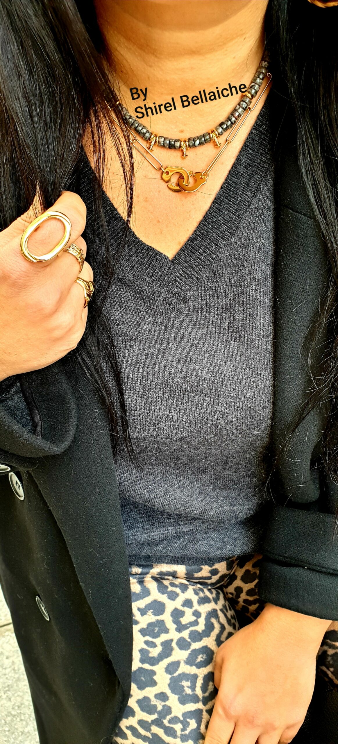 Ce modèle est disponible en deux versions ras de cou longueur de chaîne 38 cm ou sautoir avec une longueur de chaîne de 90 cm ( peux être porté en double tours)