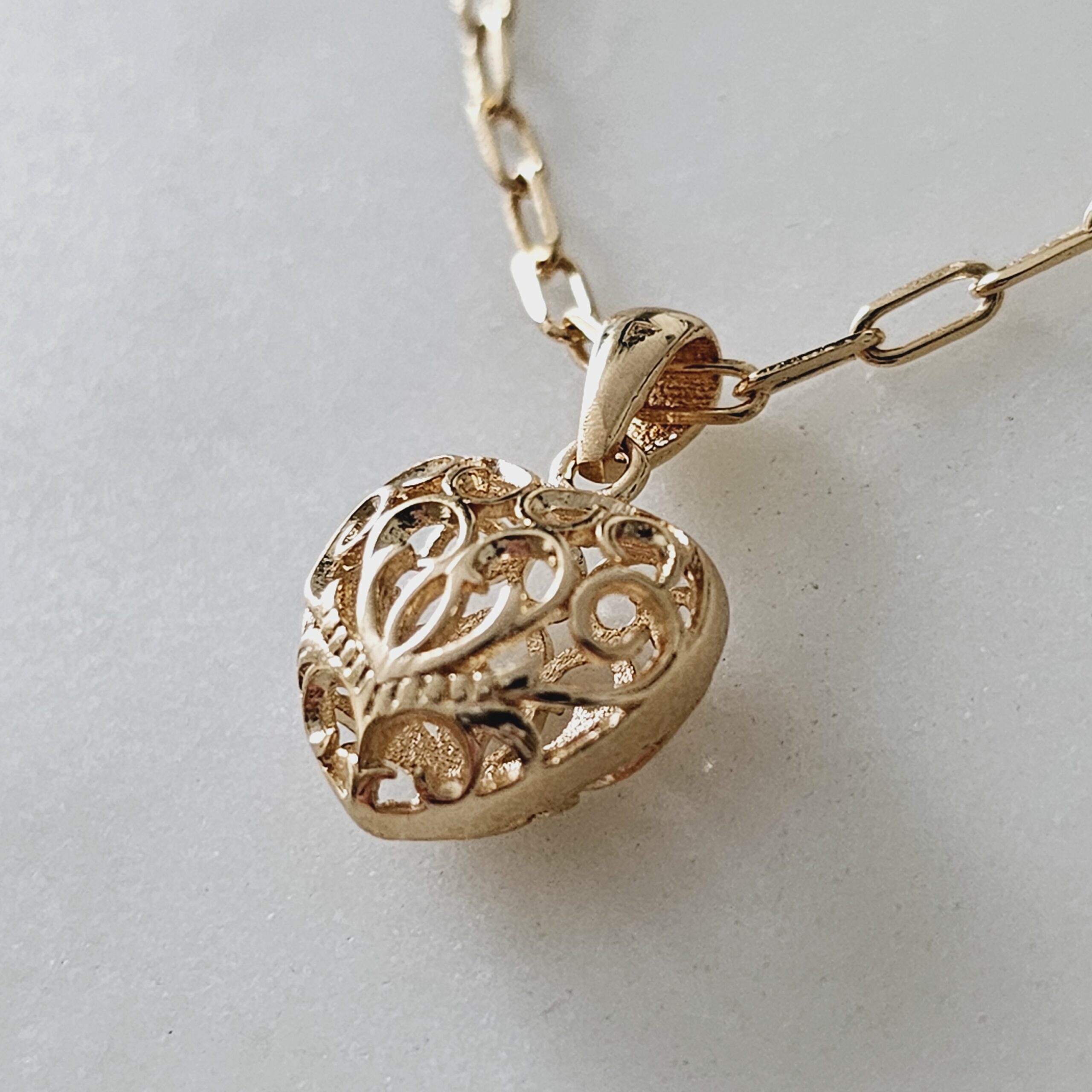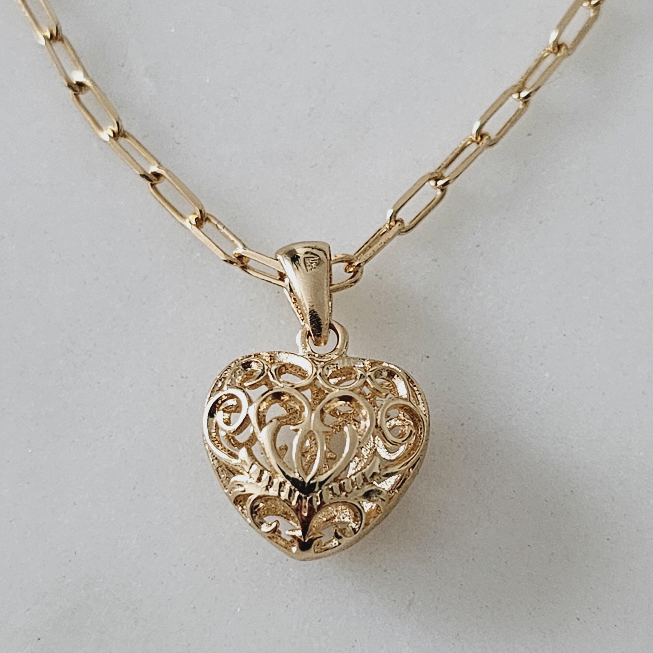 ROMEO est tout en plaqué or 3 microns, son pendentif cœur est en filigrane