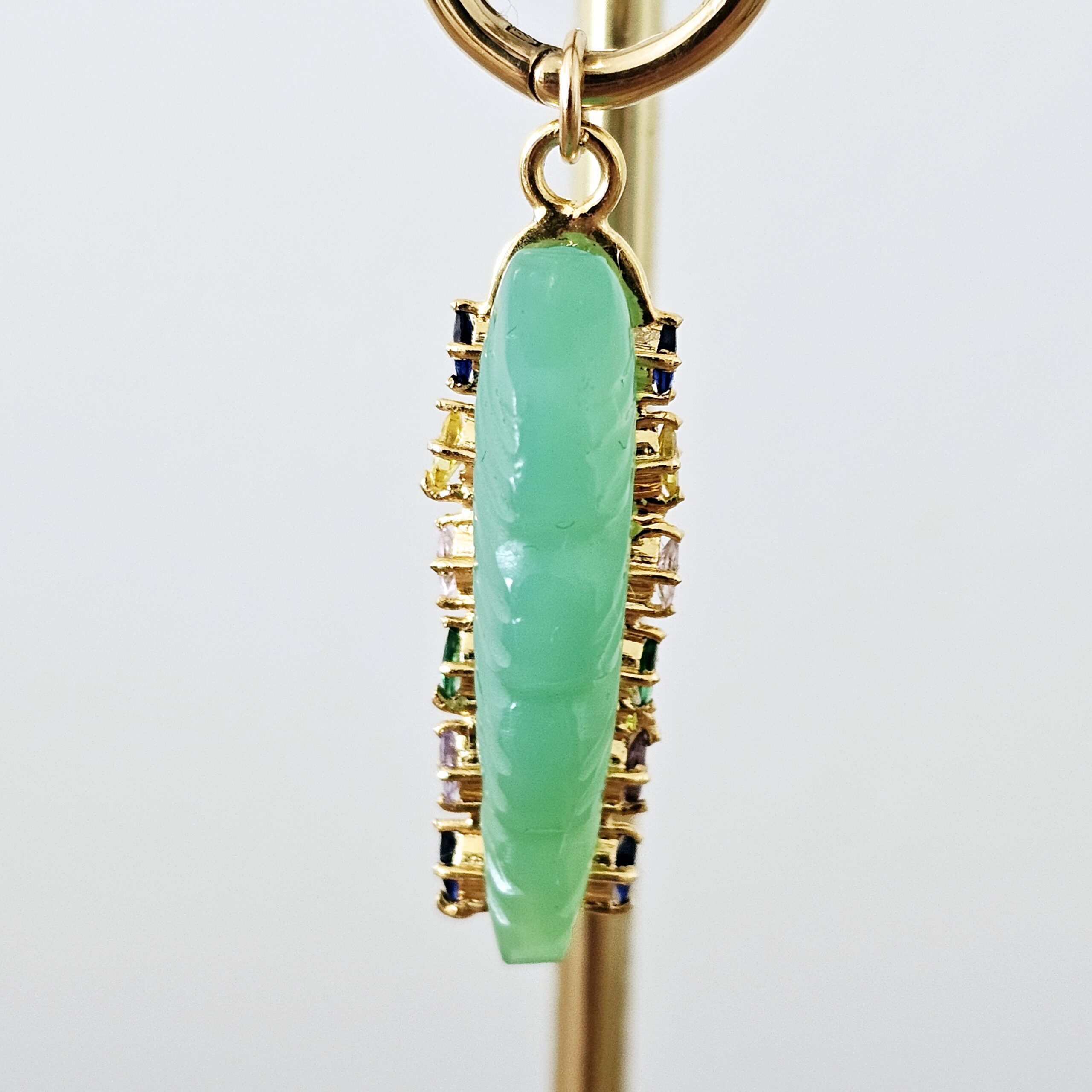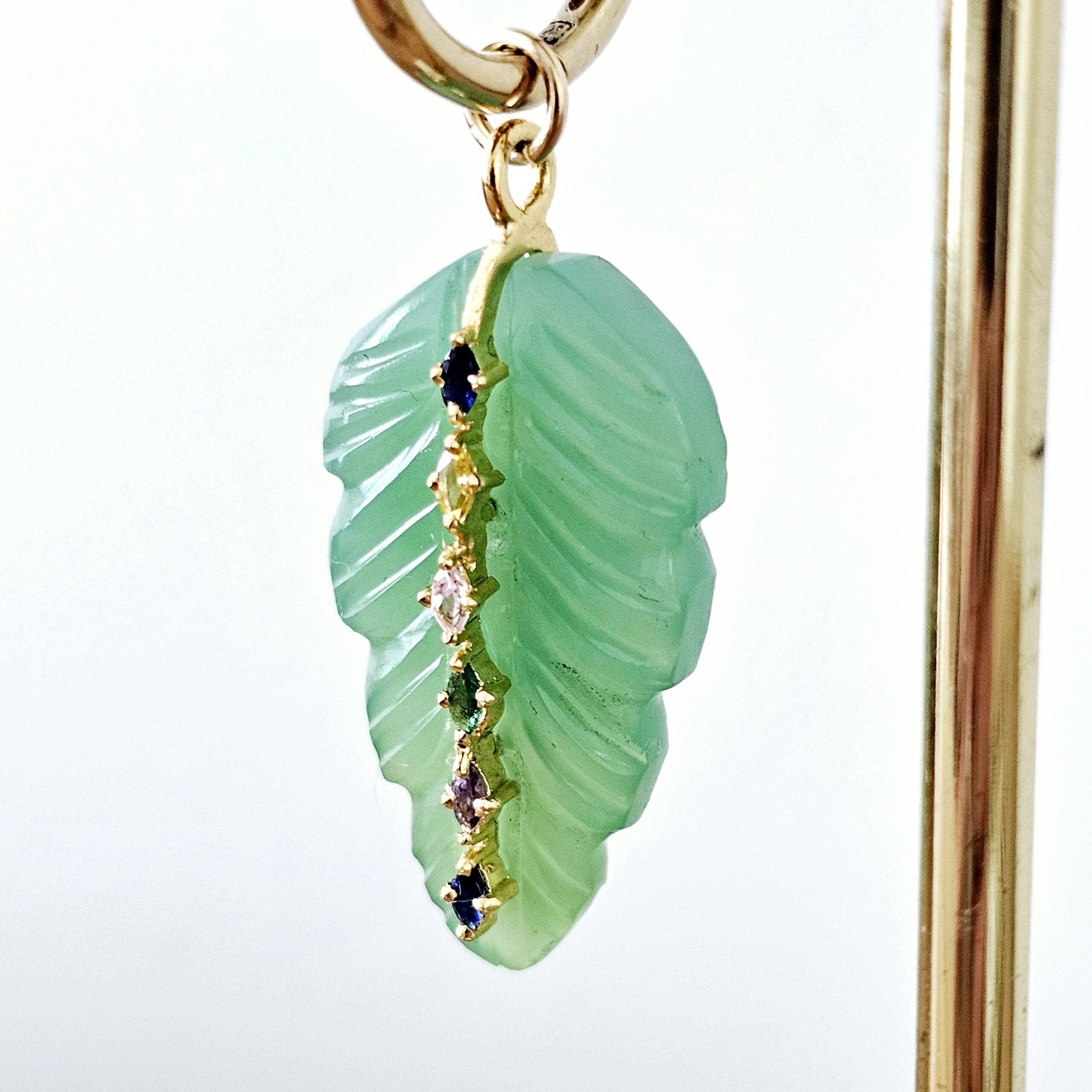 STELLA est une mono earring tout en chrysoprase avec sur chaque face une ligne de mini marquises multi couleurs en pierres naturelles. La mini créole est tout en plaquée or 3 microns.
