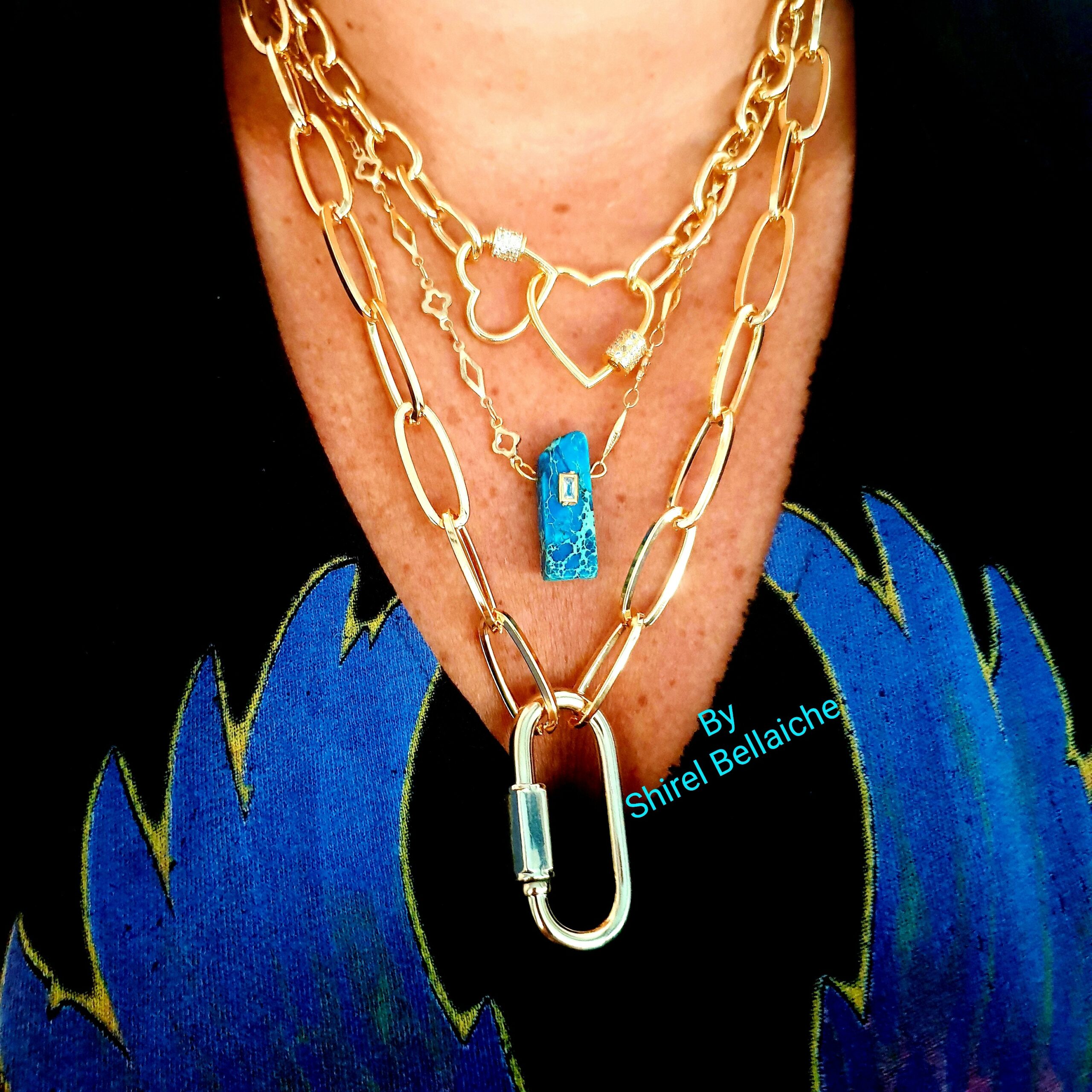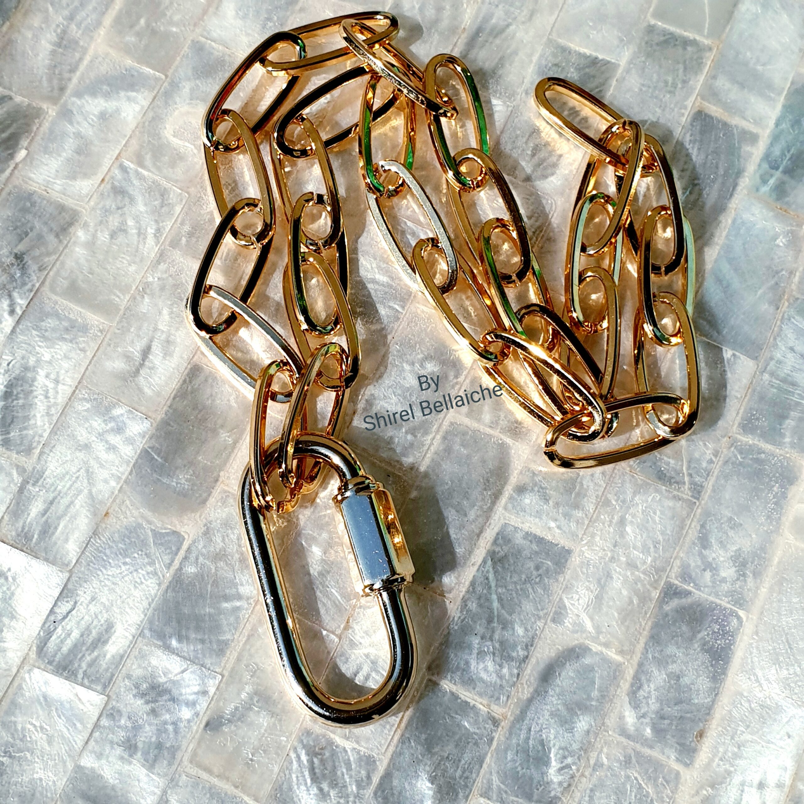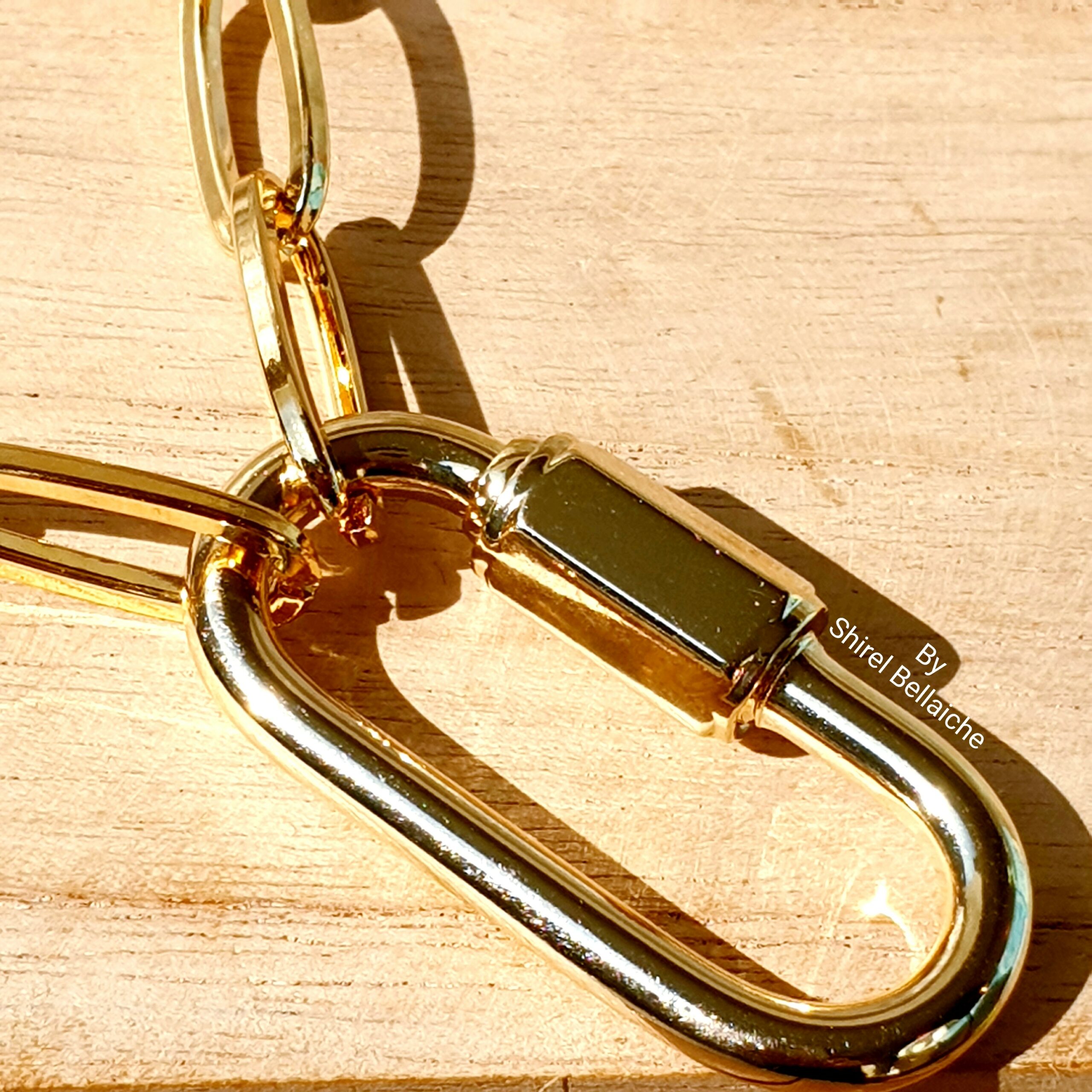 Sa chaîne large maille  est parfaitement adaptée à ce BIG mousqueton plaqué or