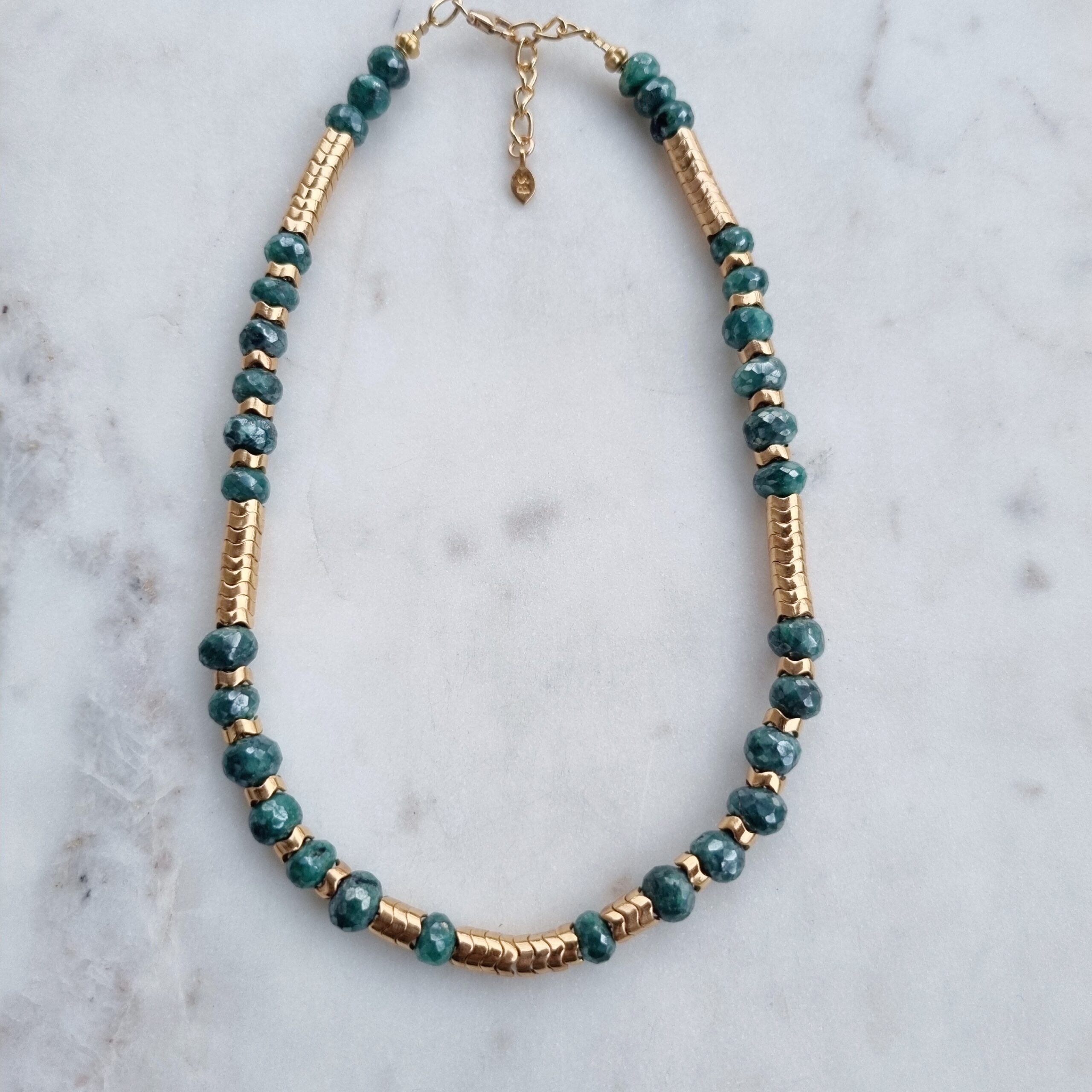 VETIVERT est un ras de cou tout en pierre de lune vert et laiton plaqué or.