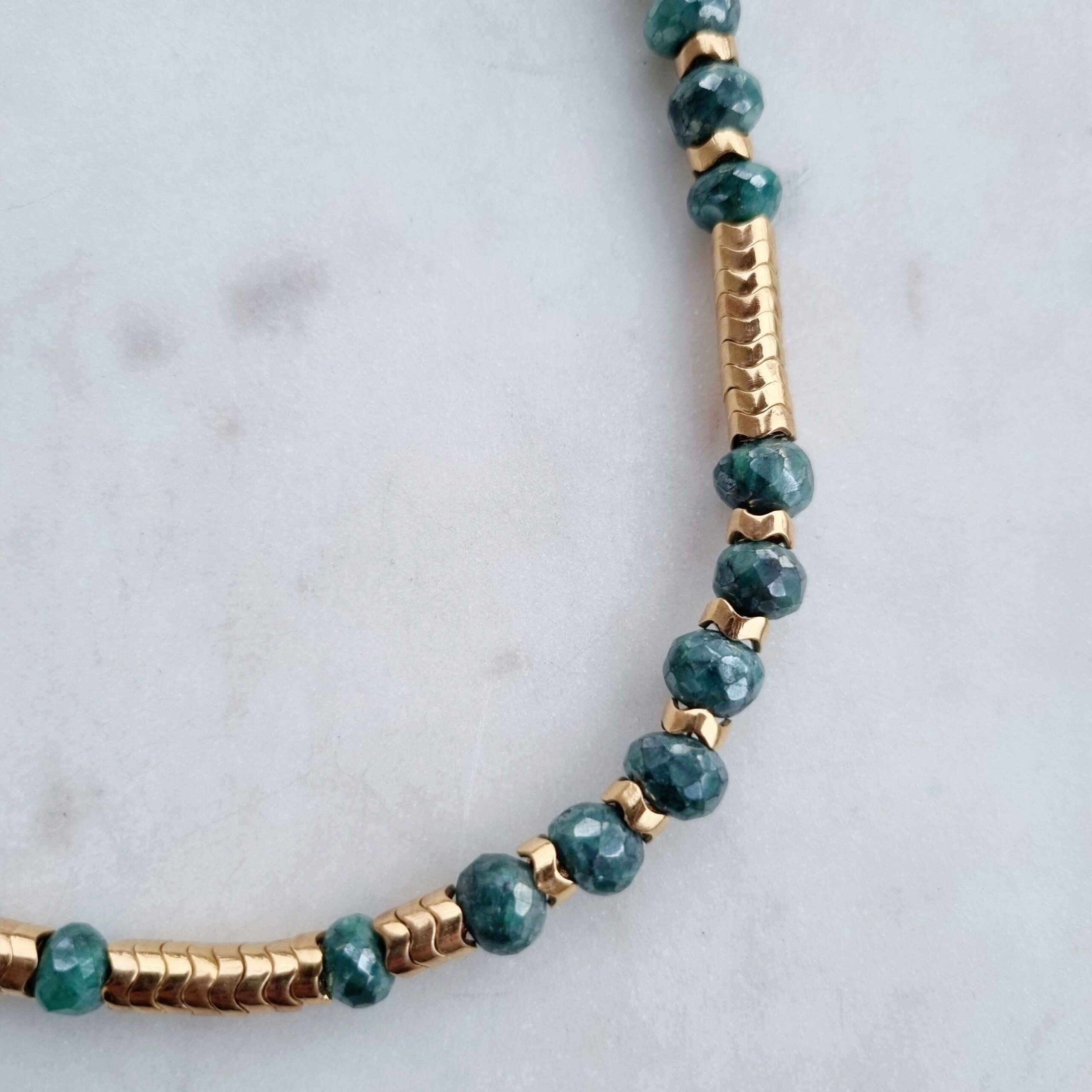 VITA est un bracelet tout en perles de labradorite facettées et perles plaquées or. La beauté des perles facettées fait de ce bijoux une vraie pépite unique en son genre.